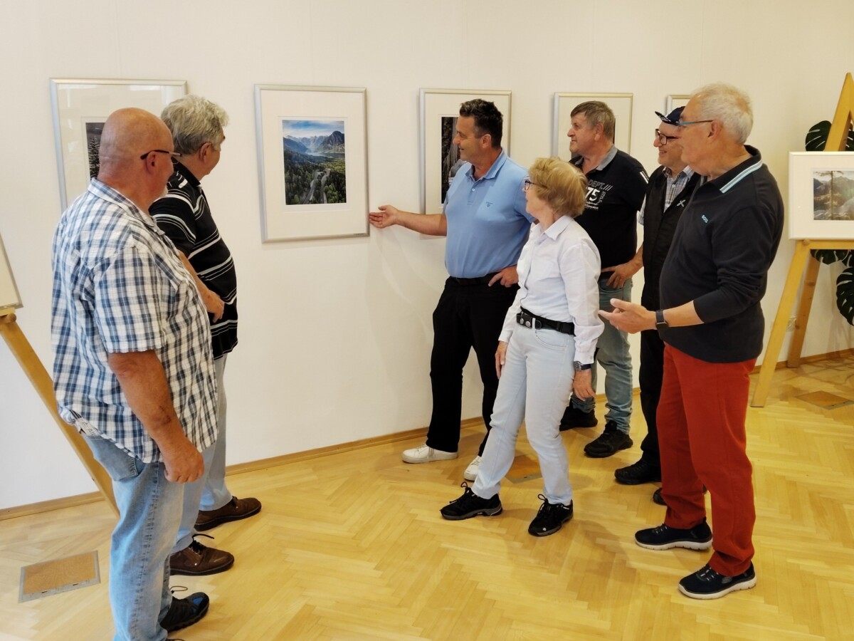 Eröffnung der Fotoausstellung in Obertraun mit Bürgermeister Egon Höll und den Mitgliedern des Fotoklubs Ebensee.