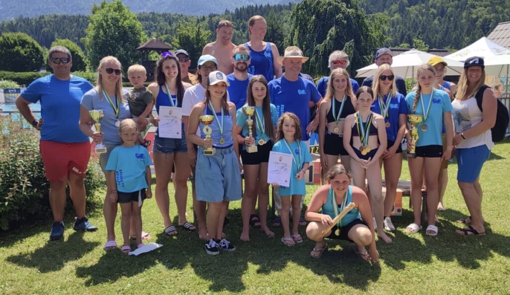 1 – Das erfolgreiche Team des USC Bad Goisern mit Bademeister Christian Kneefel (li.) und Trainer Christoph Leitner (mit Hut)