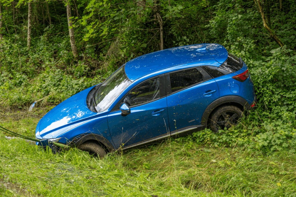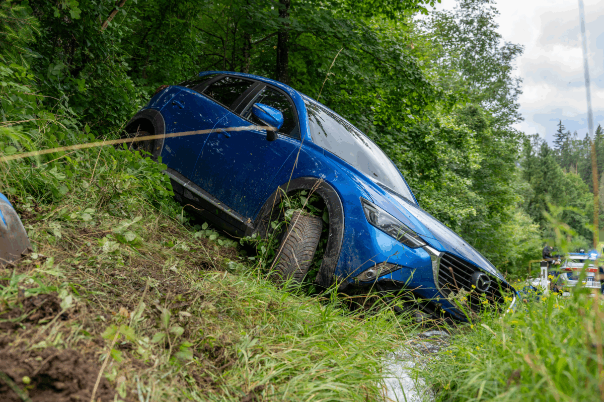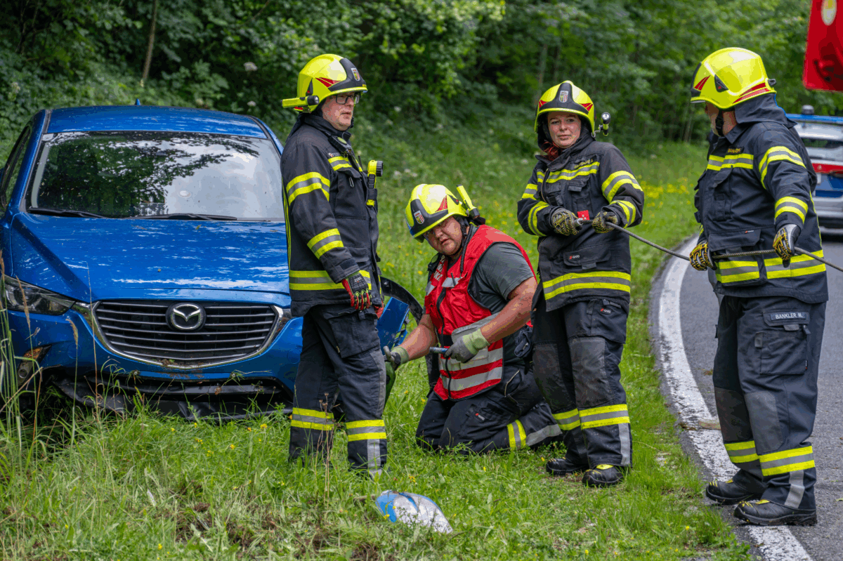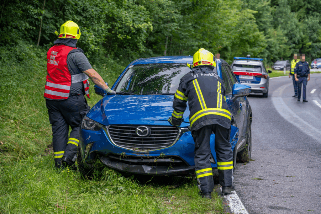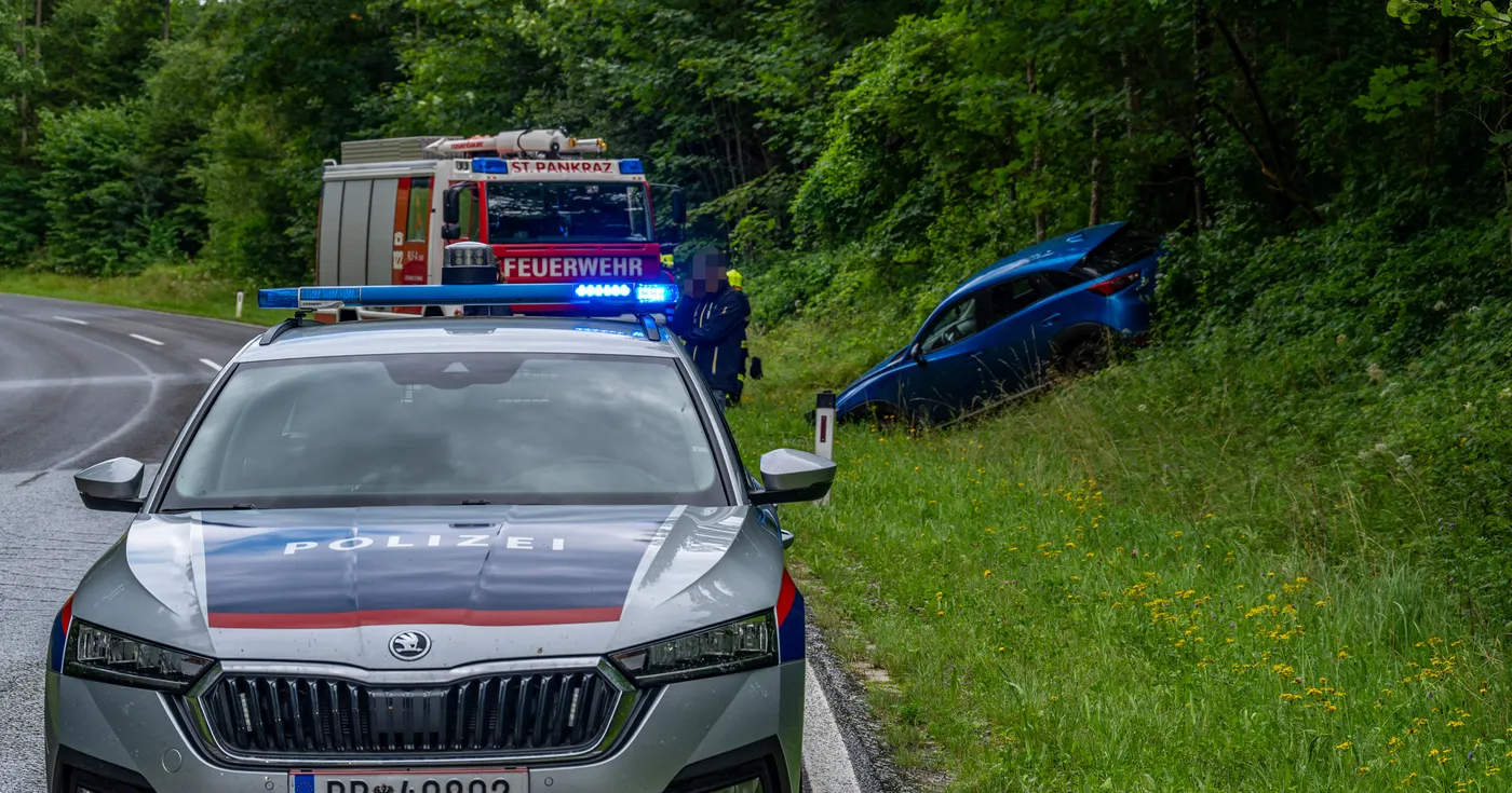 Ein Pkw, der in Fahrtrichtung St. Pankraz unterwegs war, kam in einer Kurve auf der regennassen Fahrbahn aus bislang unbekannter Ursache von der Straße ab, durchfuhr einen Regenablauf und wurde in weiterer Folge auf eine angrenzende Böschung geschleudert, wo er schließlich beschädigt und entgegen der ursprünglichen Fahrtrichtung zum Stillstand kam. Der Lenker blieb bei dem Vorfall glücklicherweise unverletzt.