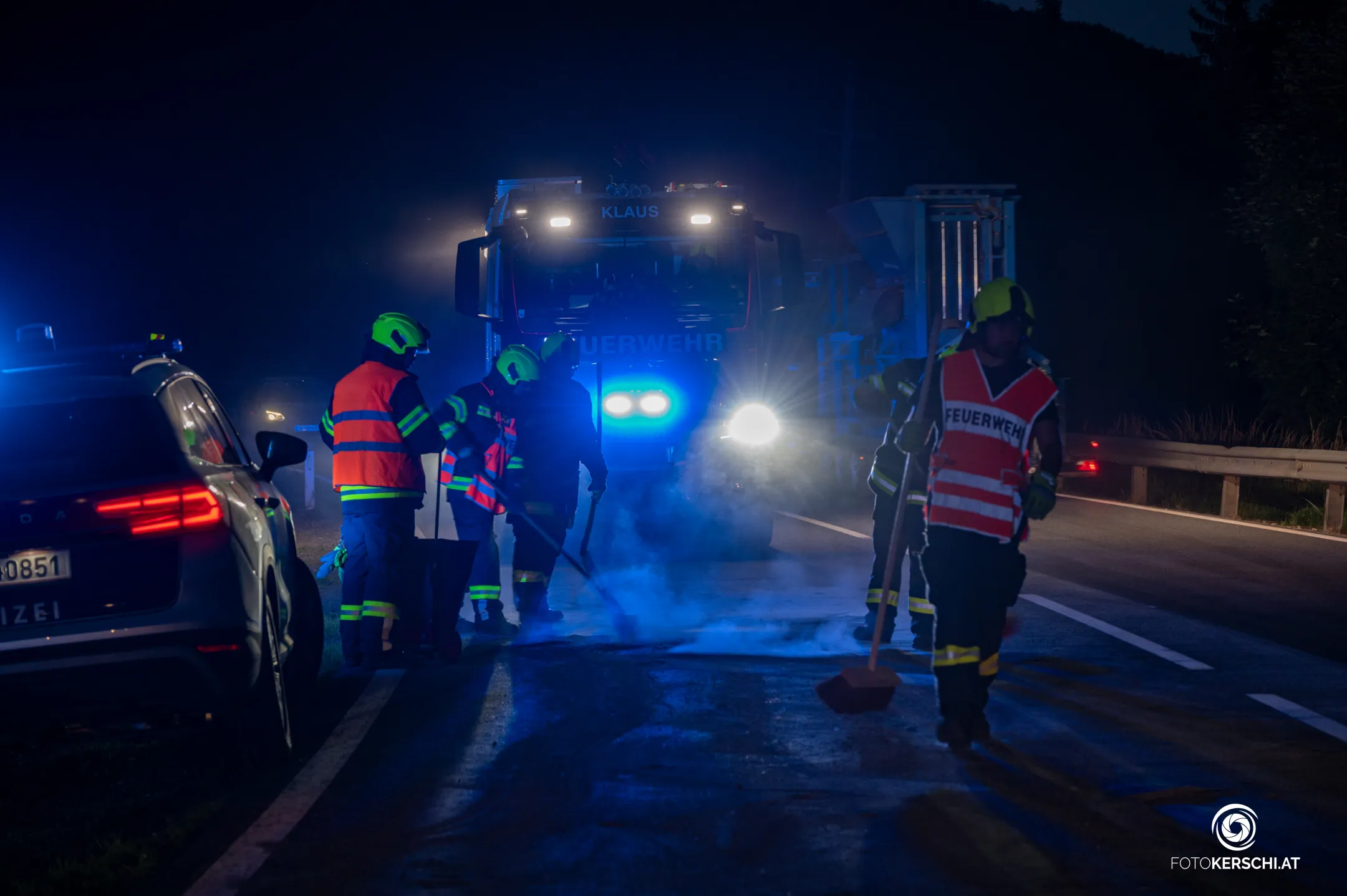 Die Freiwillige Feuerwehr Klaus wurde zur Einsatzstelle gerufen und führte die erforderlichen Aufräum- und Bindearbeiten durch. Für die Dauer der Reinigungsmaßnahmen musste die B138 kurzzeitig komplett gesperrt werden. Die Polizei regelte anschließend den Verkehr und leitete die Fahrzeuge einspurig an der Unfallstelle vorbei. Der Motorradfahrer wurde vom Rettungsdienst zur Kontrolle ins Krankenhaus gebracht, am Motorrad entstand Sachschaden.