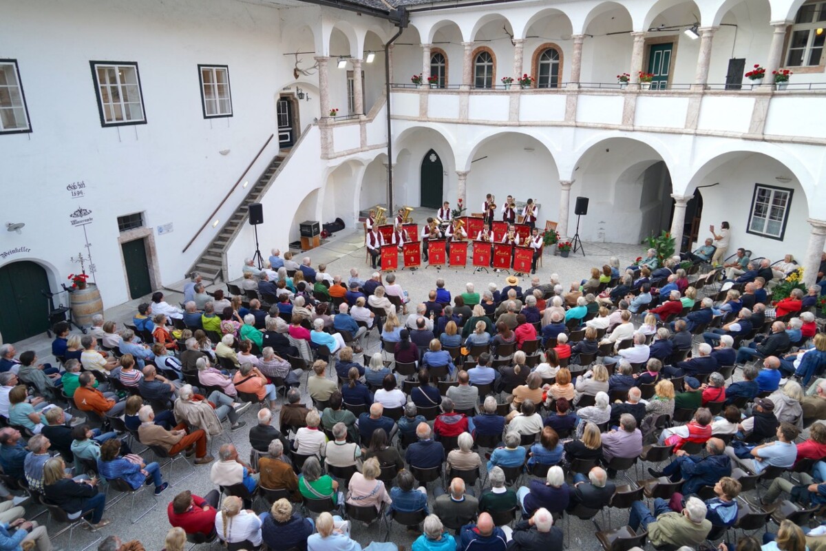 Der Sommer ist zurückgekehrt, gerade rechtzeitig für das Schlosskonzert im Seeschloss Ort Gmunden am Mittwoch 6.8.2025. Und Konsulent Franz Schindlauer als künstlerischer Leiter hatte wohl wie so oft den richtigen Riecher für eine Musikkapelle der Sonderklasse. Mit der Blaskapelle CESKA mit Kapellmeister Gottfried Reisegger aus dem Innviertel brachte er eine wohl weltbekannte Musikformation in die Traunseestadt. Konzertreisen führte sie nach China, USA, Vietnam, Malaysien, Südafrika, in die vereinigten arabischen Emirate usw, 1. Plätze bei internationalen Wettbewerbe, Europameister und Sieg des Grand Prix der Blasmusik 2019 machten die Vollblutmusiker zu dem, was sie heute am Blasmusikhimmel sind.