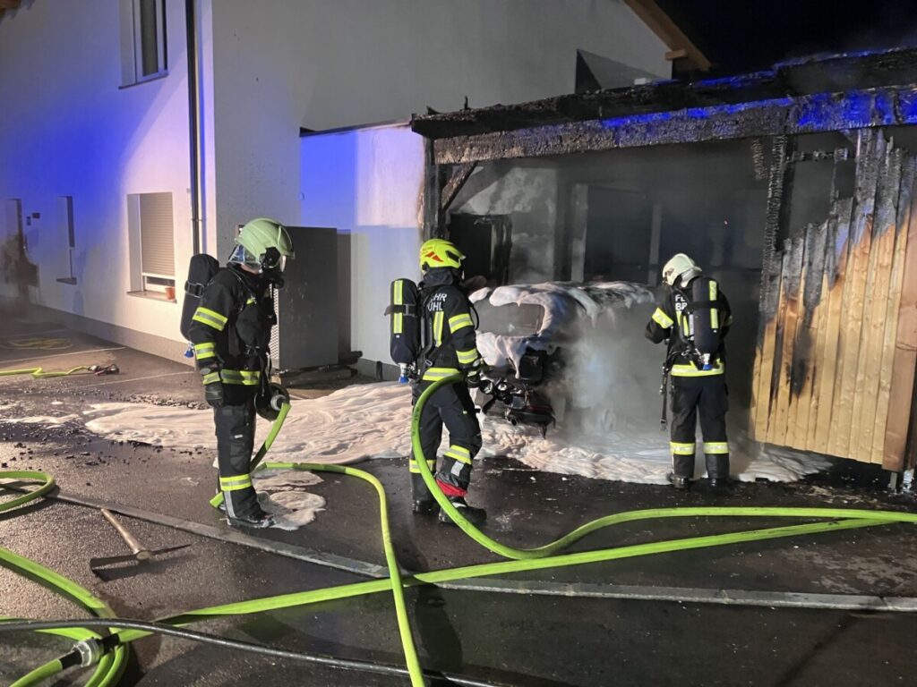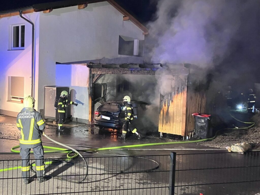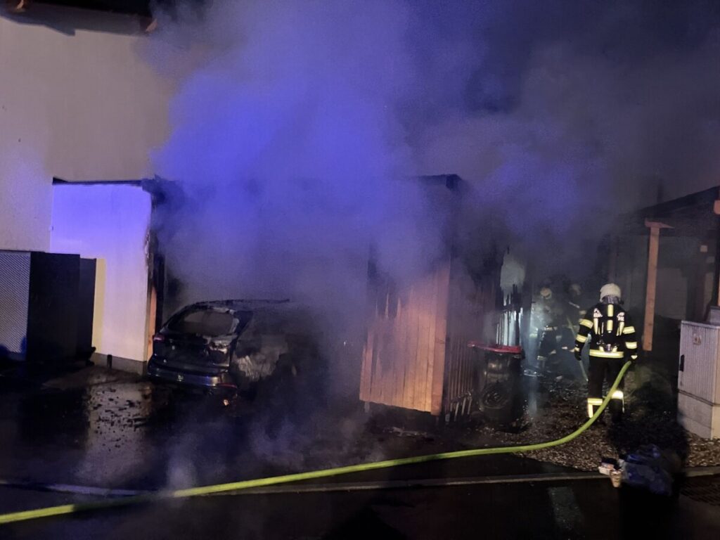 Am späten Montagabend wurde die FF Ottnang gemeinsam mit den Feuerwehren Bruckmühl, Bergern, Plötzenedt und Wolfsegg zu einem Fahrzeugbrand in einem Gebäude alarmiert. Beim Eintreffen stand ein PKW, der in einem Carport abgestellt war, bereits in Vollbrand. Die Flammen hatten bereits auf Teile der Holzkonstruktion übergegriffen und drohten, sich auf das angrenzende Wohngebäude auszubreiten. Durch das rasche und koordinierte Eingreifen der Feuerwehren konnte ein Übergreifen der Flammen auf das Nachbargebäude, sowie Wohnhaus verhindert werden.