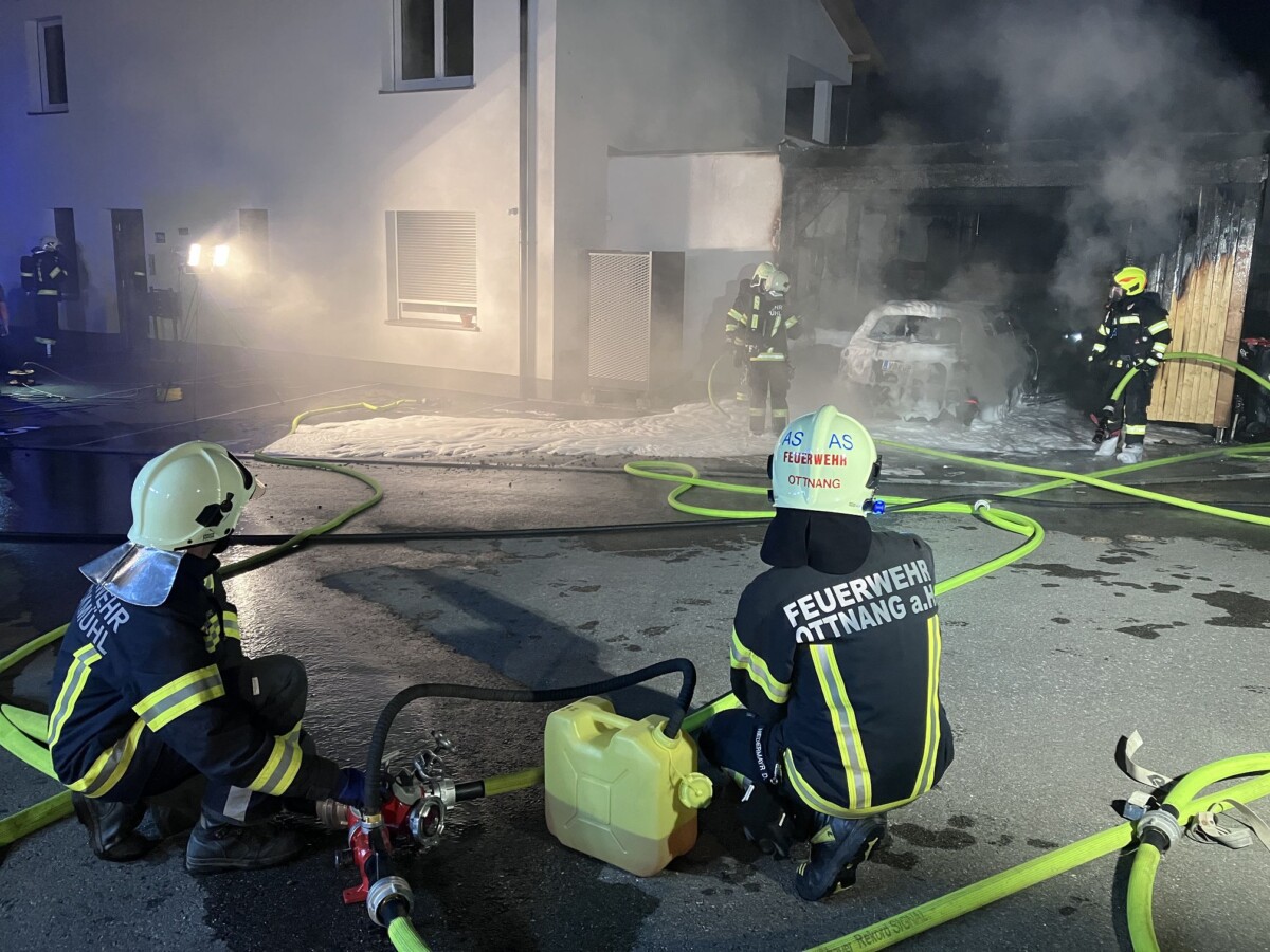 Am späten Montagabend wurde die FF Ottnang gemeinsam mit den Feuerwehren Bruckmühl, Bergern, Plötzenedt und Wolfsegg zu einem Fahrzeugbrand in einem Gebäude alarmiert. Beim Eintreffen stand ein PKW, der in einem Carport abgestellt war, bereits in Vollbrand. Die Flammen hatten bereits auf Teile der Holzkonstruktion übergegriffen und drohten, sich auf das angrenzende Wohngebäude auszubreiten. Durch das rasche und koordinierte Eingreifen der Feuerwehren konnte ein Übergreifen der Flammen auf das Nachbargebäude, sowie Wohnhaus verhindert werden.