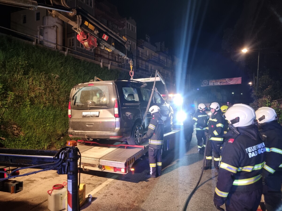 Der Fahrer wurde von den Sanitätern des Rote Kreuzes erstversorgt.Die Florianis stellten das Auto mit dem Kran wieder auf die Räder und übergaben es an einen Abschleppdienst. Nachdem die Fahrbahn gereinigt war, konnten die eingesetzten Kräfte wieder einrücken.Im Einsatz standen die Hauptfeuerwache Bad Ischl, die FF Pfandl, das Rote Kreuz, eine Streife der Polizei und ein Abschleppunternehmen.
