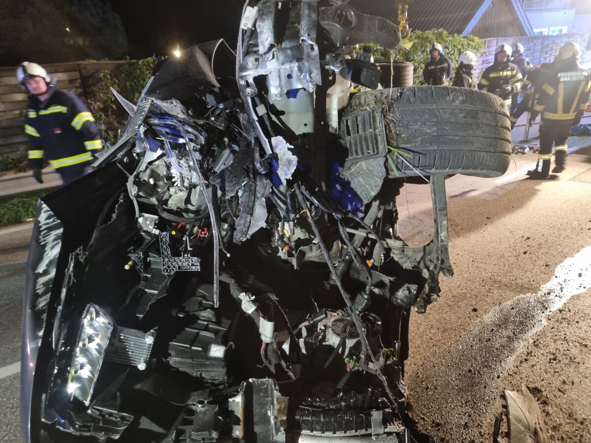 Am Einsatzort angekommen konnte zum Glück schnell Entwarnung gegeben werden. Entgegen der ersten Meldung „Auto überschlagen, Lenker noch im Fahrzeug“ hatte der Insasse das völlig beschädigte und auf der Seite liegende Fahrzeug bereits selbstständig verlassen.