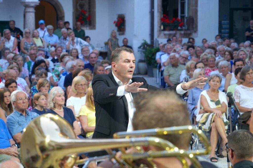 Kommenden Mittwoch 20.8.2025 findet das nächste Schlosskonzert mit der Werkskapelle Laufen-Gmunden-Englhof statt. Kapellmeister Manuel Ecklbauer hat mit Sicherheit einige Überraschungen vorbereitet und wird das Publikum mit seinen Musikerinnen und Musikern in den Bann ziehen. Beginn 19.30 Uhr, rechtzeitiges Erscheinen wird erforderlich sein, um einen geeigneten Sitzplatz zu bekommen! Der Veranstalter freut sich auf Ihren/Deinen Besuch!