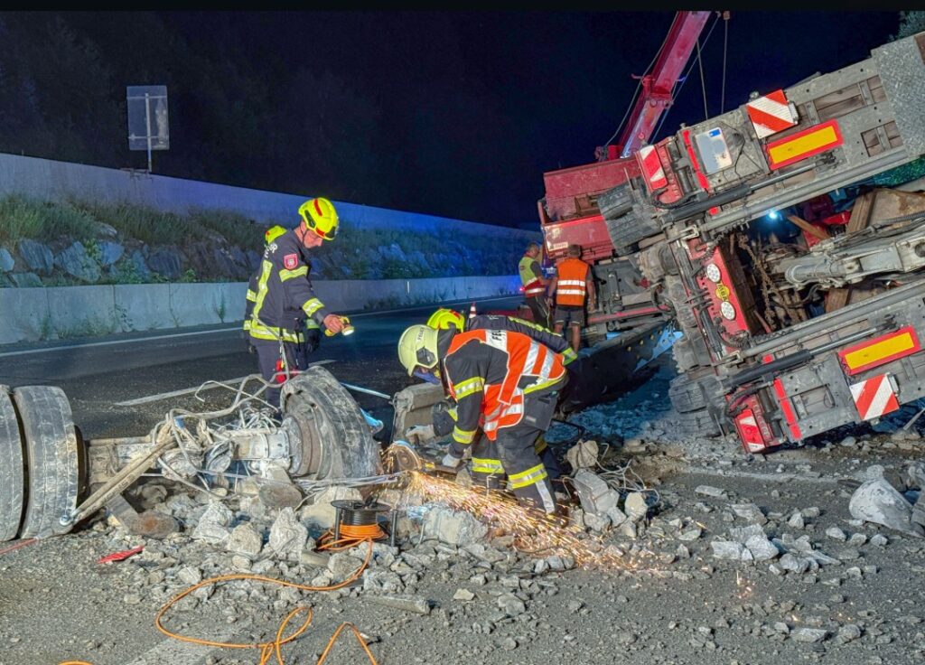 Insgesamt standen über 45 Feuerwehrleute und 15 weitere Einsatzkräfte von Rotem Kreuz, Polizei und Bergeunternehmen im Einsatz.