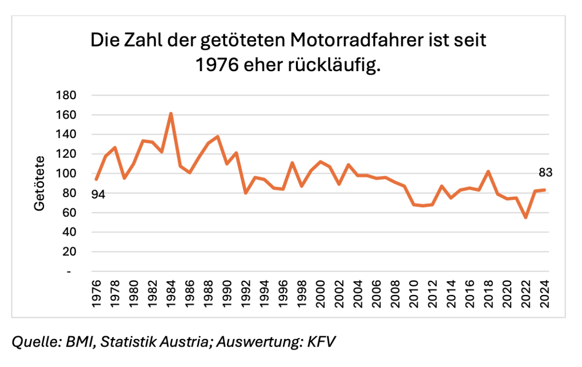 Die heißen Monate fordern ihren Tribut: Obwohl in Österreich achtmal so viele Pkw wie Motorräder zugelassen sind, verunglückten in diesem Sommer (von Anfang Juni bis inklusive 31. August 2025) schon mindestens 37 Personen mit Motorrädern tödlich und damit mehr als mit Pkw (34). Die Gesamtzahl der tödlich verunglückten Motorrad-Aufsassen summiert sich seit Jahresbeginn auf 59 Personen, in Pkw starben 2025 bisher 93 Personen. Das Kuratorium für Verkehrssicherheit (KFV) erklärt, was die Hauptgründe sind und wie die Zahl der Unfälle im Spätsommer und Herbst verringert werden kann.