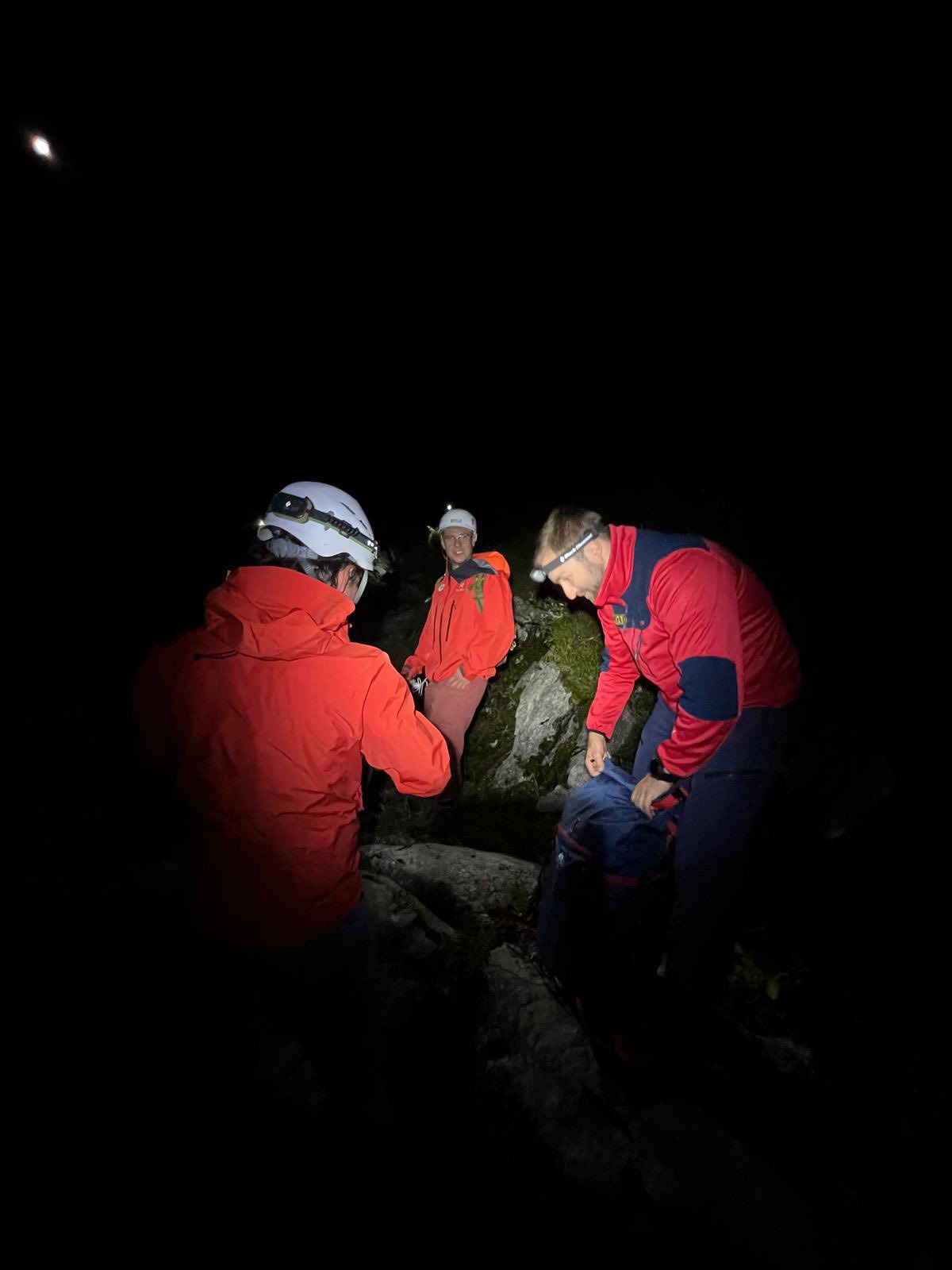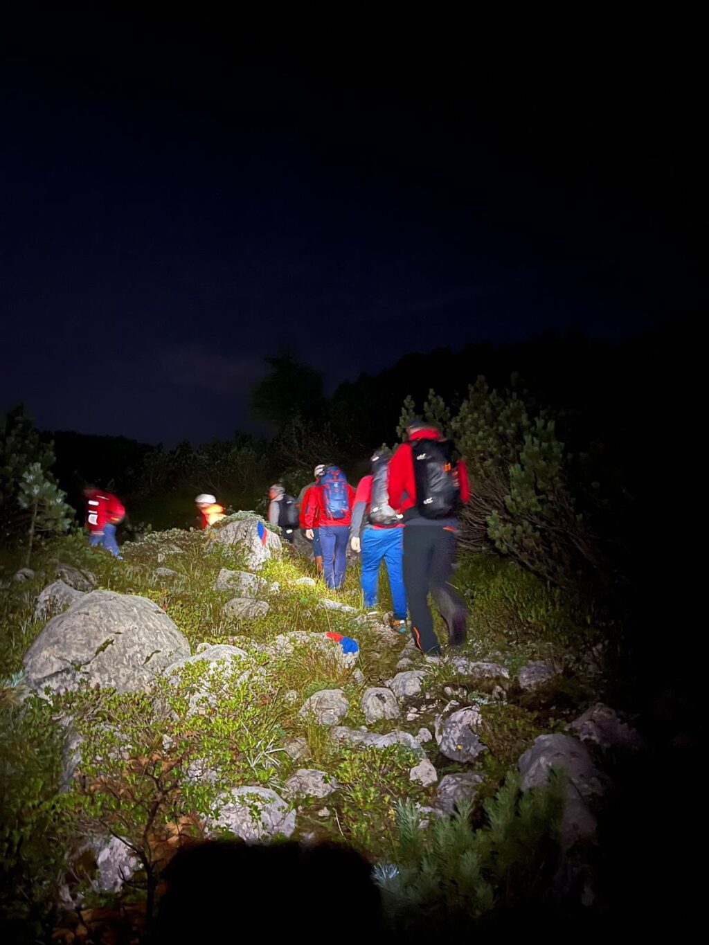Kurz nach 22:00 Uhr konnten die beiden Sportler im unwegsamen Gelände aufgefunden werden. Nach kurzer Versorgung „Wärmemanegment“ konnten sie selbstständig mit der Mannschaft zur Gjaidalm gehen.