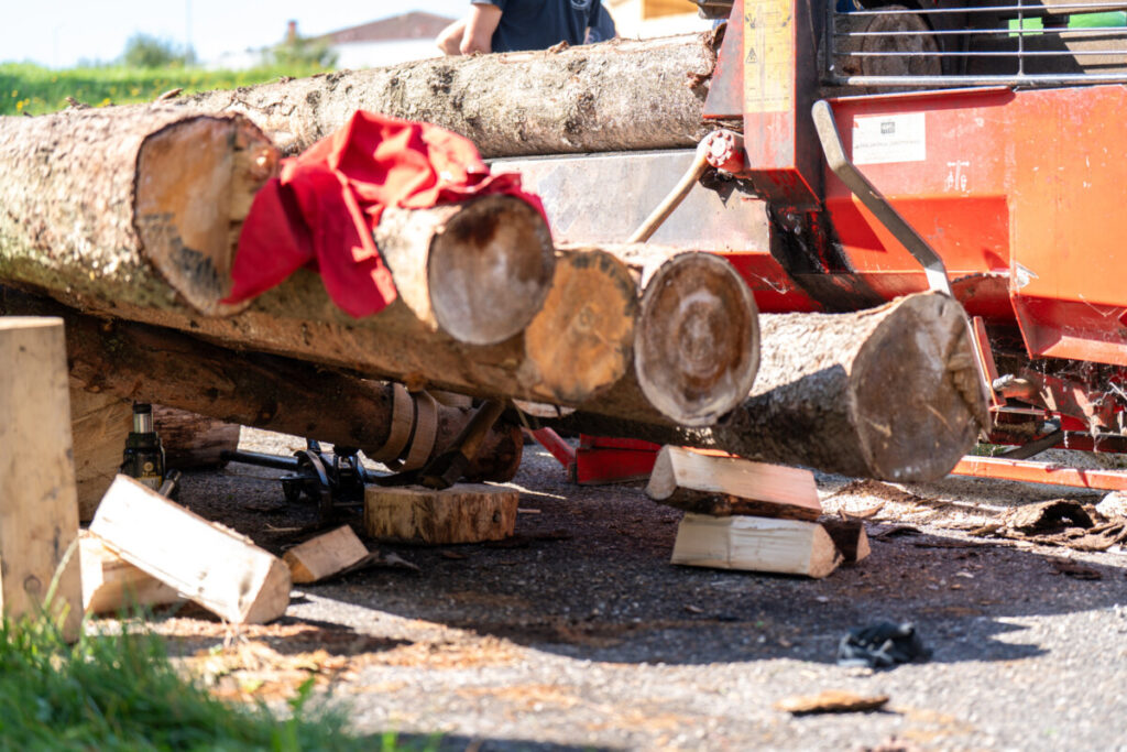 Bei den Arbeiten geriet ein Baumstamm ins Rollen und klemmte dabei den Fuß eines Mannes zwischen mehreren massiven Stämmen ein. Mehrere Ersthelfer reagierten sofort und setzten einen Wagenheber ein, um den Stamm so weit anzuheben, dass der Verletzte befreit werden konnte.