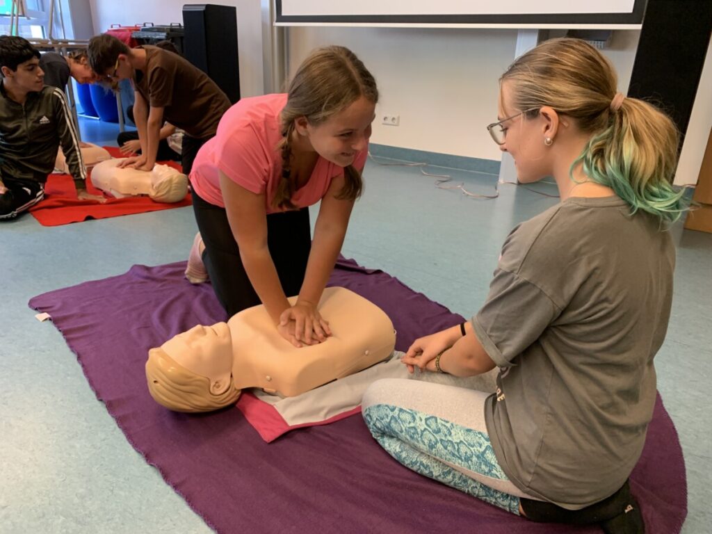 Der 10. September stand an der digiMS 2 Bad Goisern ganz im Zeichen der Gesundheit. Durchgeführt wurde ein interaktiver Stationenbetrieb für alle Klassen, bei dem die Schülerinnen und Schüler lernten, welche Medikamente in eine Hausapotheke gehören, wo man medizinische Hilfe erhalten kann und wie man in einer Notfallsituation richtig reagiert. Theoretisch erworbenes Wissen, wie die korrekte Durchführung der Herzdruckmassage, wurde in praktischen Trainings direkt angewandt.