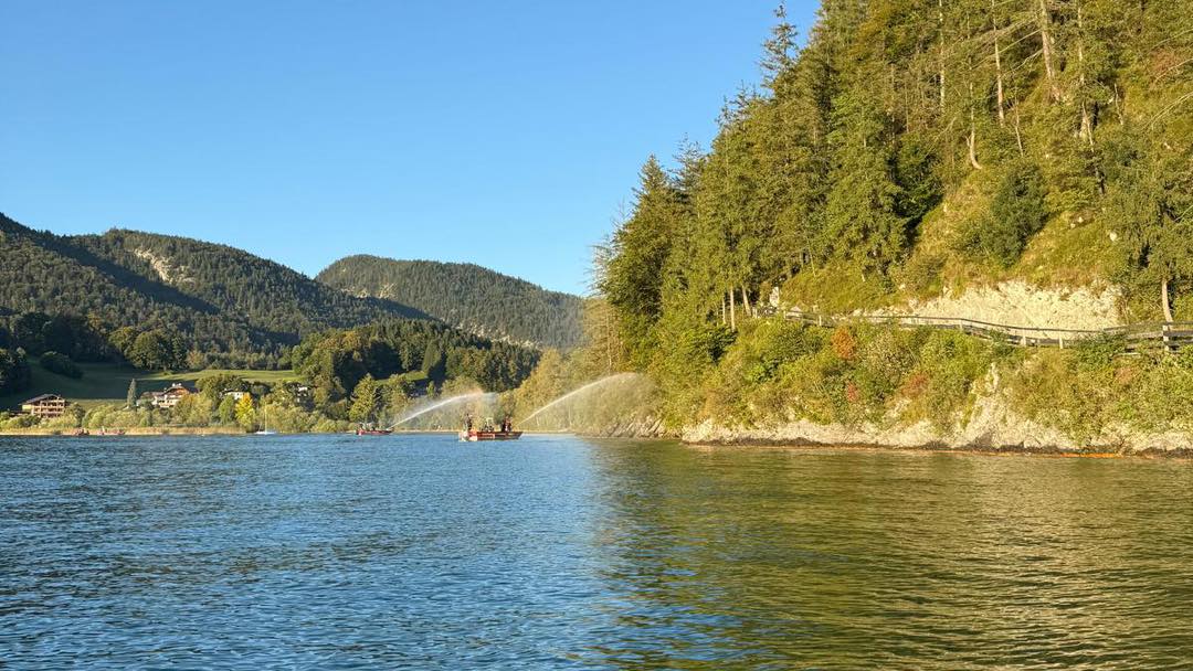 Am Freitag den 19. Sept. fand die jährliche Bezirks- Bootsübung am Wolfgangsee statt. Natürlich war auch die FF Obertraun bei bestem Wetter mit unserem A-Boot dabei! In dem vorgegebenen Übungsszenario eines Waldbrandes, wo Löscharbeiten und Personenrettung vom Boot aus geübt wurden, konnten alle Aufgaben erfolgreich abgearbeitet werden! Wir danken dem Bezirks- Feuerwehrkommando für die Einladung und Planung dieser Übung, sowie den Partnerorganisationen für die gute Zusammenarbeit!
