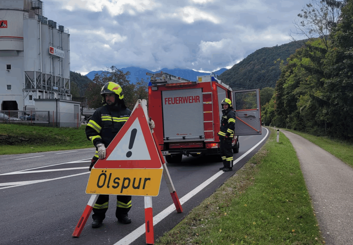 Am Mittwoch, 1. Oktober 2025 wurden die Florianis der Feuerwache Sulzbach gegen 13:20 Uhr zu einer Ölspur auf der B145, Höhe Billa Plus gerufen.