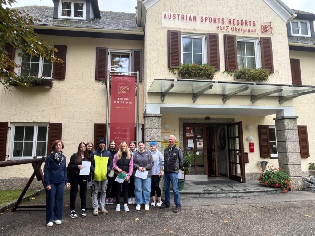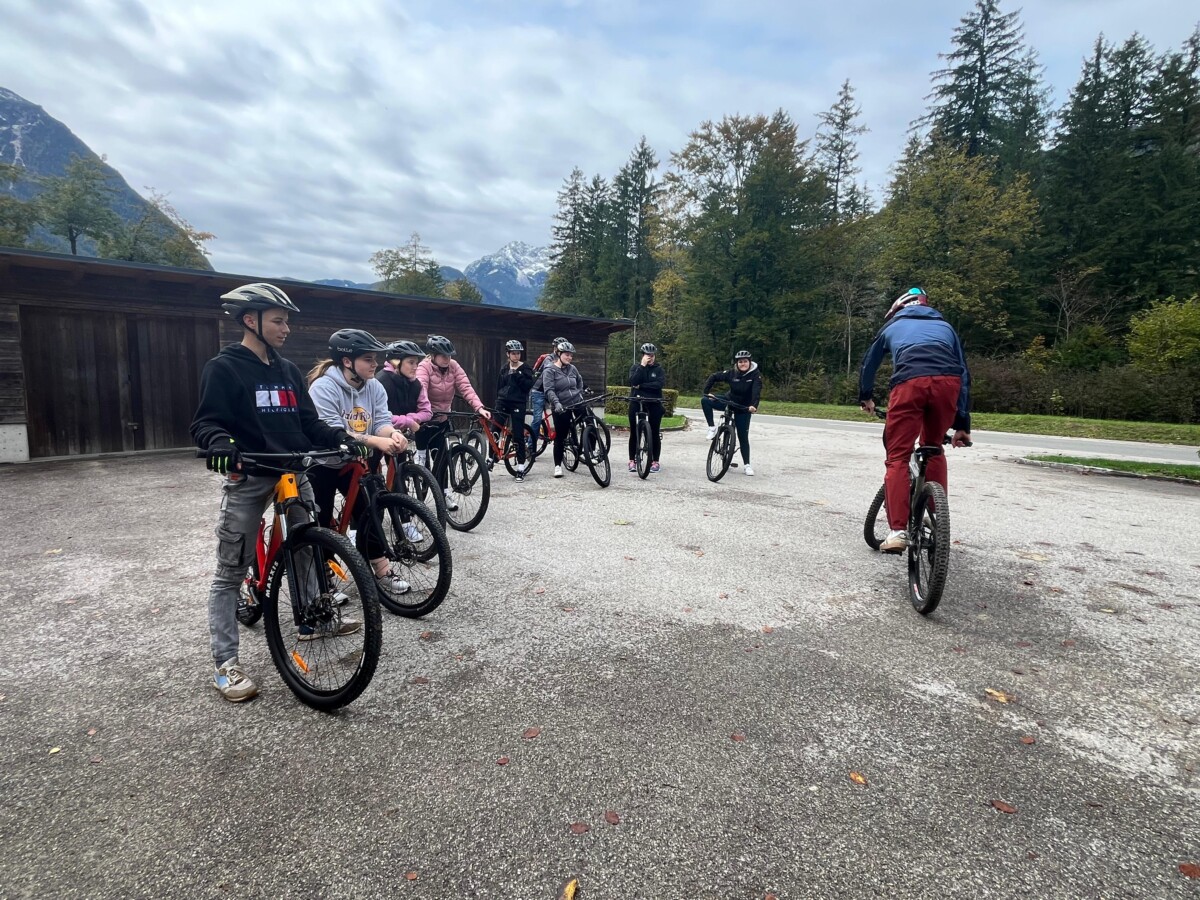 Die zweite Klasse verbrachte den Tag in Obertraun. Im Bundessport- und Freizeitzentrum (BSFZ) erfuhren die Schüler/innen, wie breit das sportliche Angebot vor Ort ist – von Trainingslagern über internationale Wettkämpfe bis hin zu professionellen Betreuungsprogrammen. Danach stand Bewegung an der frischen Luft auf dem Programm: Unter der Leitung von Bikeguide Julian Eisen ging es auf eine geführte Biketour durch die Umgebung. Davor absolvierten die Teilnehmer/innen ein kurzes Fahrsicherheitstraining, bevor sie in die Austrian Sports Resort BSFZ Obertraun Trail Area Obertraun ihre Geschicklichkeit unter Beweis stellten.