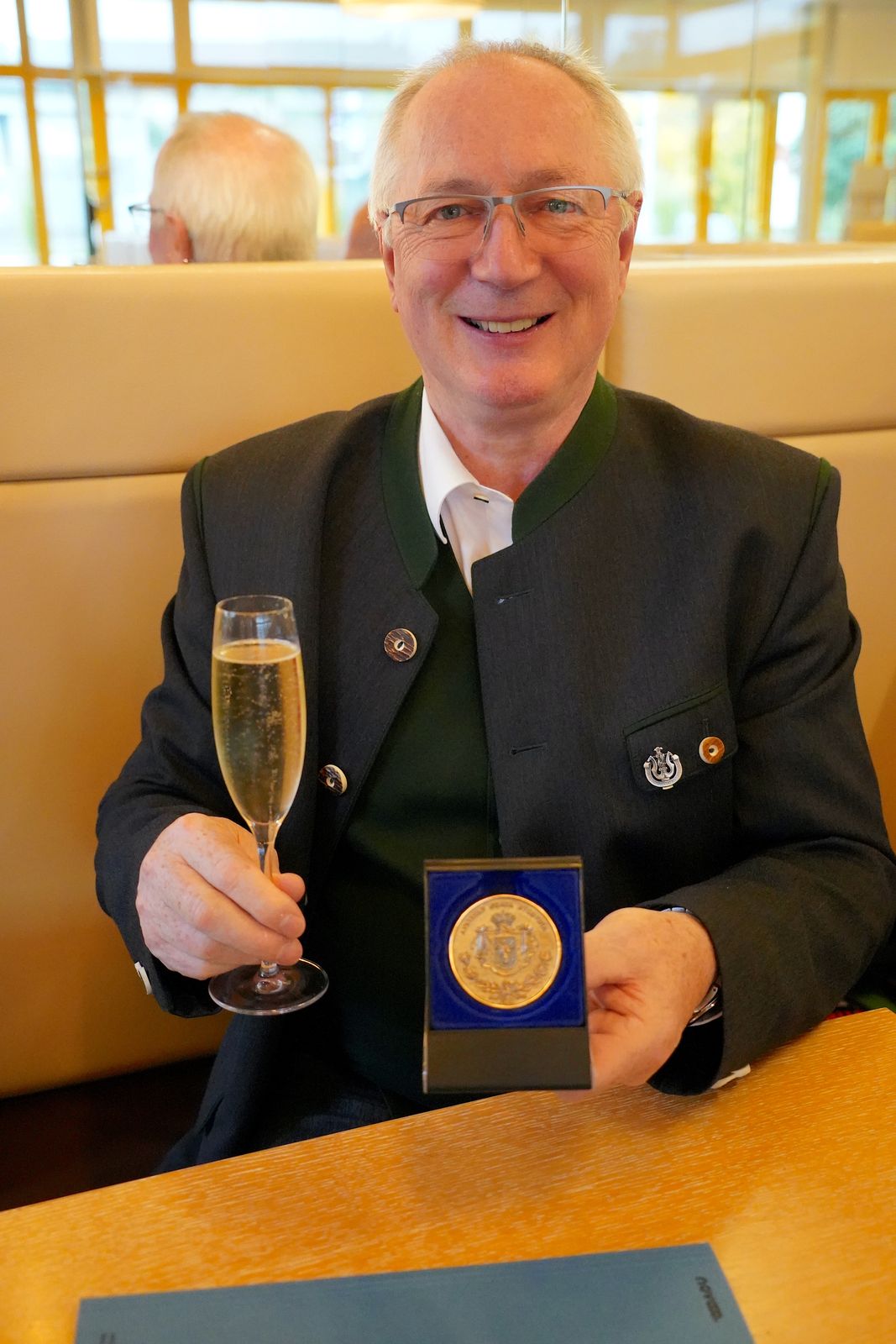 Seine Eltern sind ja mit dem Flüchtlingstross der Bukowina bis nach Laakirchen geflüchtet und dies beschäftigt den siebzigjährigen Herbert Riess intensiv und er hat auch eine umfangreiche Sammlung an Unterlagen über die Bukowina zusammen getragen. Dies führte auch dieses Jahr zu einem mehrere Tage dauernden Fest „250 Jahre Bukowina!” in den Orten Vorchdorf, Laakirchen und Ohlsdorf. Das Interesse war äußerst groß, speziell in der Kitzmantel Veranstaltungshalle in Vorchdorf, mit einer umfangreichen Ausstellung über mehreren Wochen Dauer.Eine entsprechende Würdigung für diese aufwendige Ausstellung und Durchführung „250 Jahre Bukowina” erhielt Herr Herbert Riess am Donnerstag, 9.10.2025 durch die Überbringung einer Ehrenmedaille durch die Herren Harald Hörmannseder Hausruckviertler aus Braunau und dem Wiener Dipl. Päd. Klaus Josef Samhaber, die erst kürzlich für die Verdienste anlässlich des Jubiläumsjahres „250 Jahre Bukowina” von der Privatinitiative des vormaligen Landespräsidenten der Bukowina und dem Augsburger Bukowina Institut feierlich übergeben wurde. Bei dieser Ehrung in privatem Rahmen in Prag hat Herr Harald Hörmanseder auch den Gschwandtner Herbert Riess für seinen unermüdlichen Einsatz um die Geschichte der Bukowina für eine Ehrung als würdigen Kandidat vorgeschlagen. Dies hat die Herren überzeugt und diese mit 100 Stück limitierte Ehrenmedaille an Herbert Riess vergeben.Eine nicht alltägliche Ehrung, die nach Übersendung der Auszeichnung an Herrn Harald Hörmanseder auch persönlich am Donnerstag, 9.10.2025 feierlich an Herbert Riess übergeben wurde. Gratulation von dieser Seite aus für den Einsatz um die Geschichte der Bukowina, die in Österreich eine neue Heimat gefunden haben.