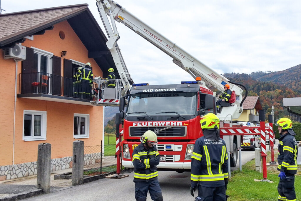 Ein Pensionist hatte gegen Mittag des 17. Oktober 2025 einen medizinischen Notfall erlitten und musste vom Notarzt erstversorgt und stabilisiert werden. Doch für den Transport aus dem Obergeschoß des Wohnhauses war das Stiegenhaus viel zu eng, weshalb sich der Rettungsdienst der Unterstützung der FF Bad Goisern bediente. Zusammen mit den Kollegen der FF Weissenbach wurde der Patient mittels Krankentrage schonend in den Korb der Hubrettungsbühne verbracht. Danach konnte dieser unter Notarztbegleitung und mitsamt viel medizinischem Equipment schonend zu Boden und folglich vom Rettungsdienst ins Krankenhaus transportiert werden.