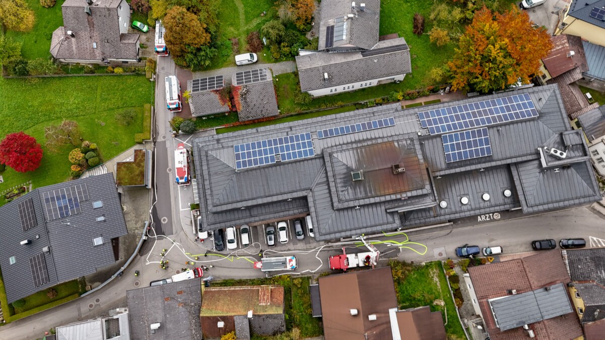 Im Rahmen der Übung wurden die Feuerwehren aus Guggenberg, Innerschwand und St. Lorenz zur Unterstützung bei der Evakuierung und dem Atemschutzeinsatz nachalarmiert.