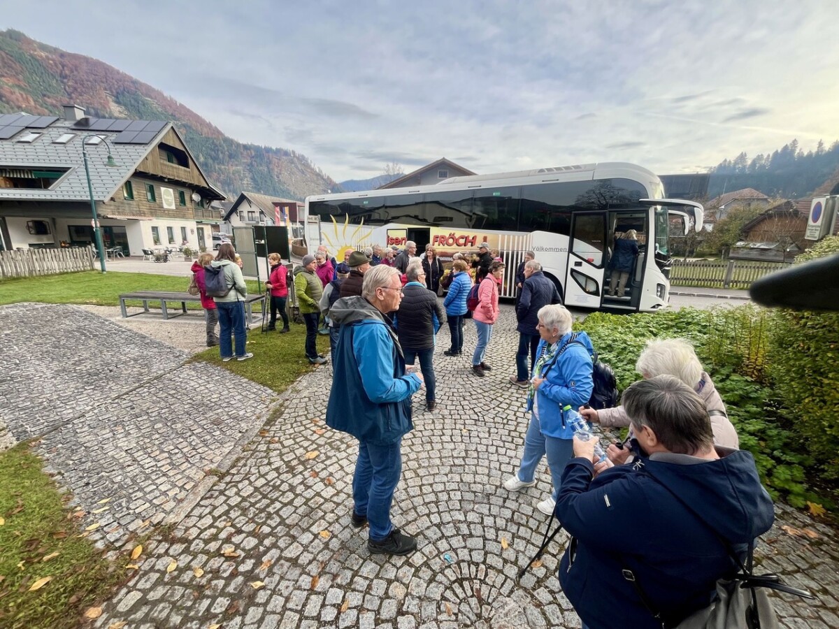 Ja da hat das Sprichwort „Wenn Englein reisen, wird sich das Wetter weisen!” zu 100 Prozent gepasst. Eine große Reisegruppe von mehr als 50 Teilnehmer des Pensionistenverbandes Ortsgruppe Gschwandt machte sich am Donnerstag 23.10.2025 mit Busreisen FRÖCH Laakirchen auf den Weg nach Hinterstoder. Dort angekommen hat Reiseleiterin Heidi Hampl eine Führung im Alpineum, dass im Gemeindegebäude untergebracht ist vereinbart. In zwei Gruppen mit je einem Museumsführer wurde zur Geschichte des Stodertales die Schwerarbeit der Holzknechte, die alpine Erschließungsgeschichte des Toten Gebirges und die Entwicklung des Schisportes von den Anfängen bis zum Weltcup ausführlich erklärt. Viele Ausstellungsstücke veranschaulichten dies in perfekter Form und die Museumsführer erklärten alle Einzelheiten im Detail.