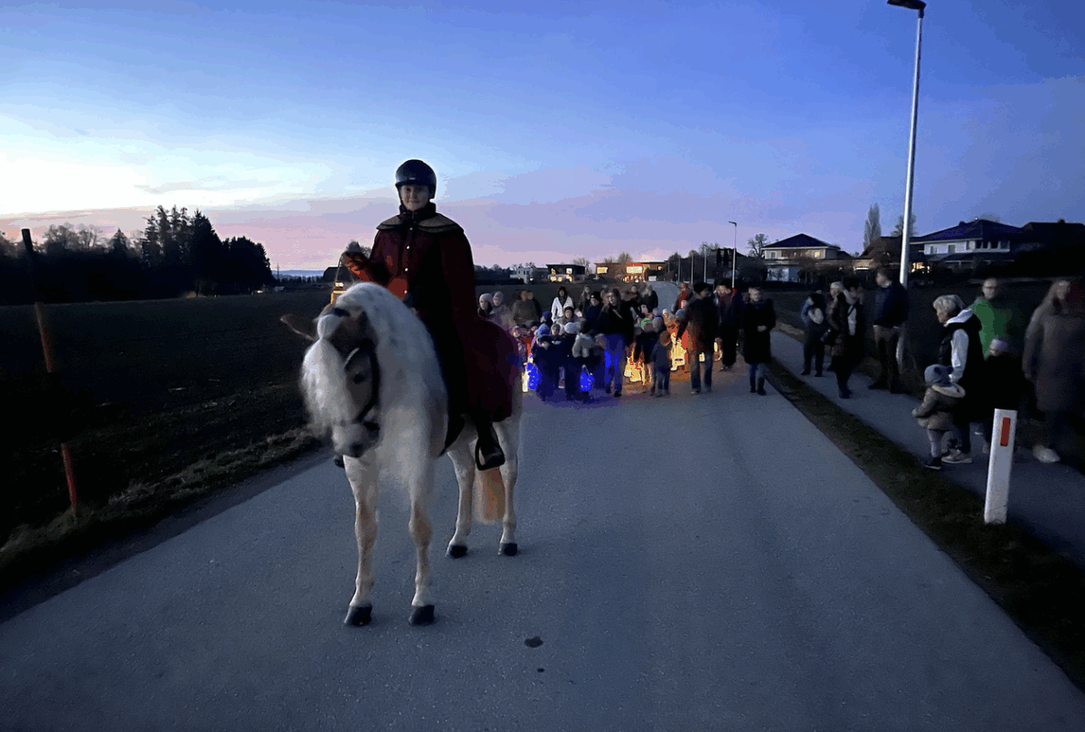 Für die Kindergartenkinder des Kindergarten Gschwandt war heute Dienstag 11.11.2025 der große Tag gekommen. Das Martinsfest und der Martinumzug vom Kindergarten in die Pfarrkirche Gschwandt konnte bei Schönwetter pünktlich um 17:00 Uhr starten. Vor den Kindergartengruppen mit ihren wunderschönen Laternen ritt auch der heilige Martin hoch zu Ross. Und heute stimmte das Lied der Lieder „Ich gehe mit meiner Laterne und meine Laterne mit mir, von oben leuchten die Sterne und unten da leuchten wir“, dass alle Kinder und Betreuer mit voller Kehle in die Nacht klingen ließ!
