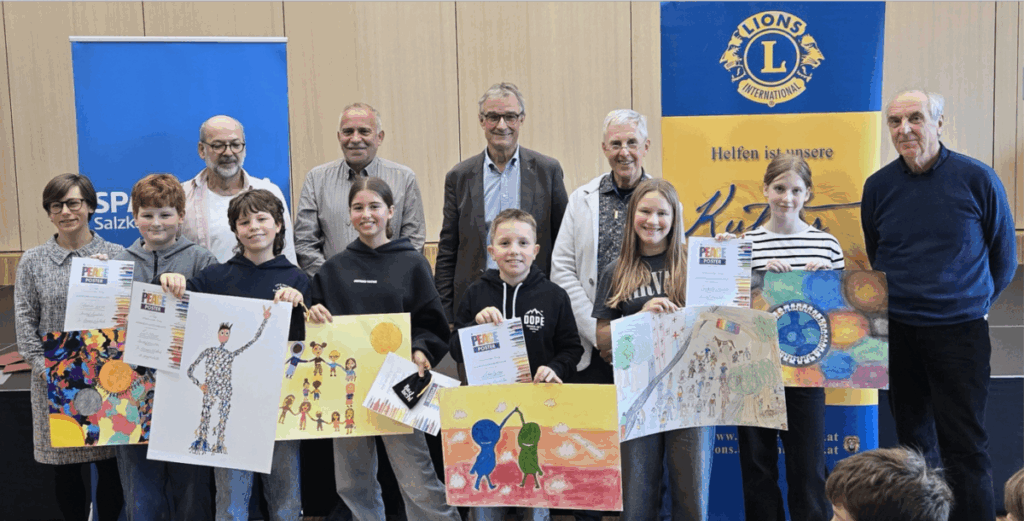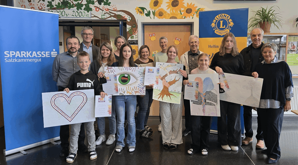 Seit 36 Jahren laden die Lions Clubs weltweit Kinder zwischen 11 und 13 Jahren ein, sich in grafischer Form mit dem Thema „Frieden“ auseinander zu setzen, seit 2008 organisiert der Ischler Lions Club den Friedensplakat-Malwettbewerb für Schulen in unserer Region. Und gerade in Zeiten, wo leider tagtäglich Kriegsberichte über alle Medienkanäle ins Haus kommen, ist es umso bewundernswerter, welche Gedanken und Überlegungen die Schülerinnen und Schüler auf das Papier bringen und dies teilweise in bestechender technischer Ausführung. Thema war dieses Jahr „Gemeinsam einig“.
