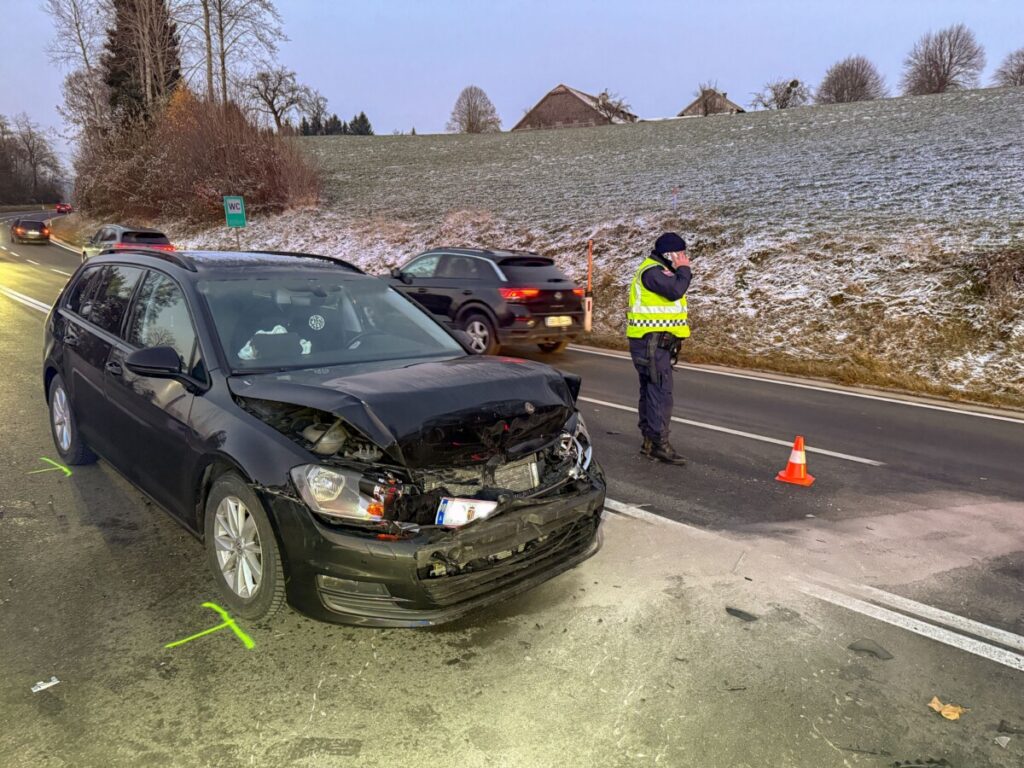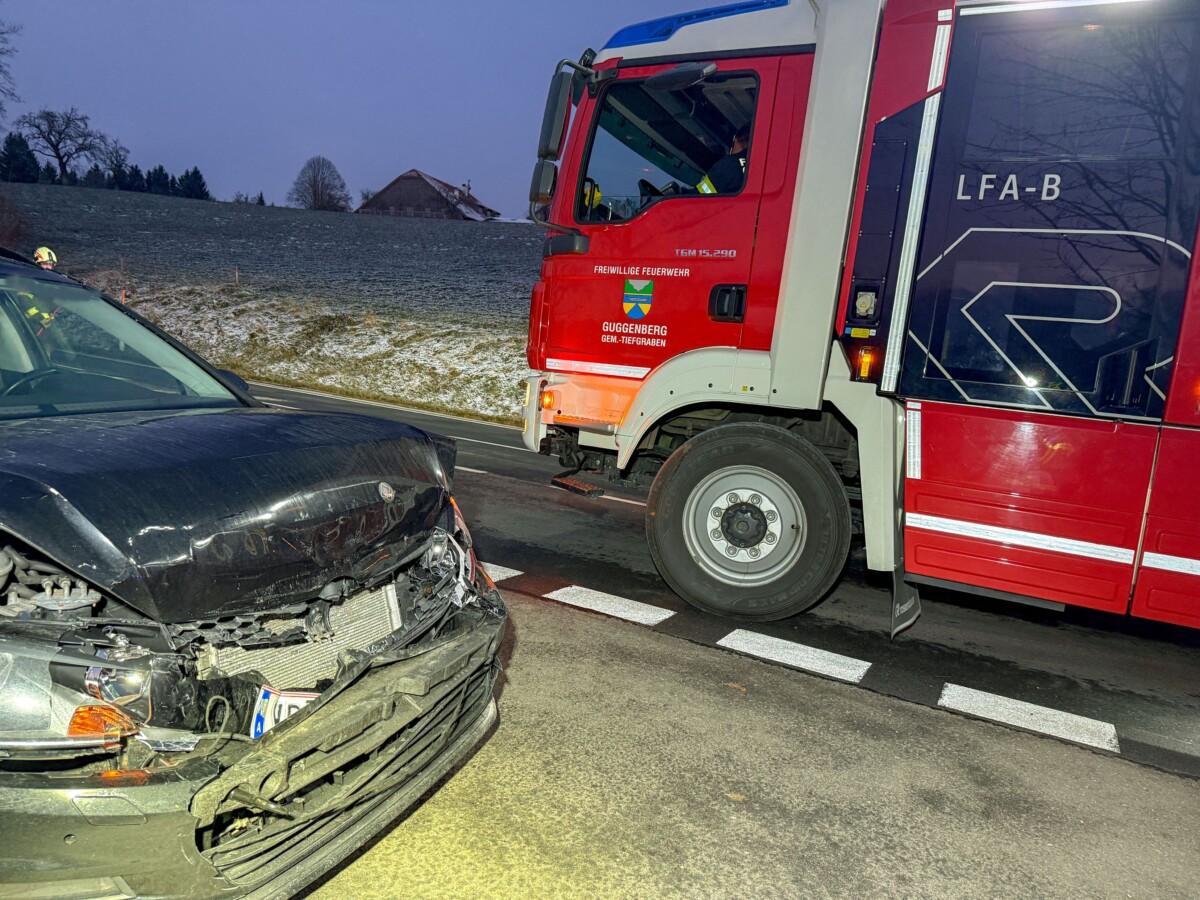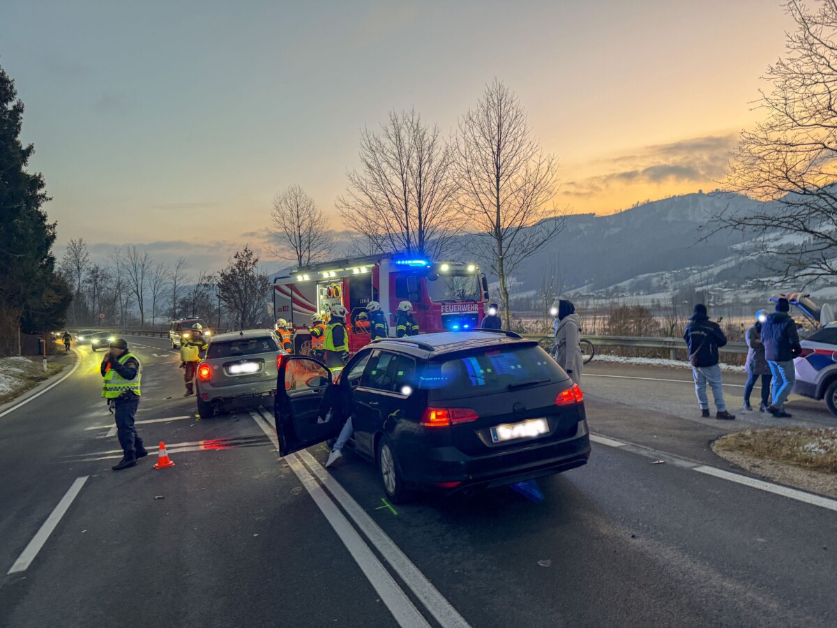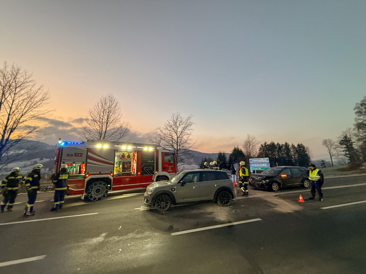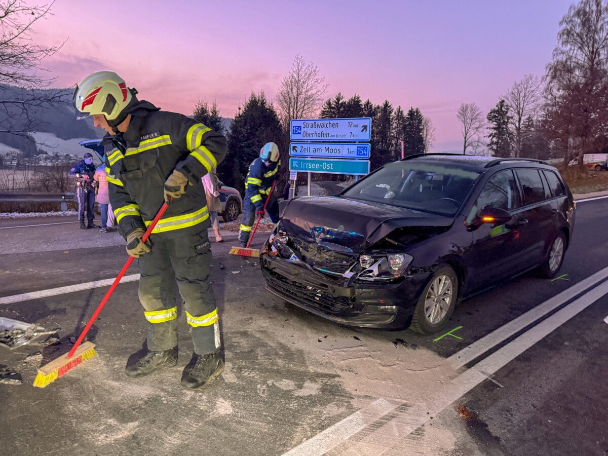 Am Samstag, 22.11.2025, wurde die Freiwillige Feuerwehr Guggenberg um 16:31 Uhr zu einem Verkehrsunfall auf die B154 Mondsee Straße Höhe Irrseeblick alarmiert.