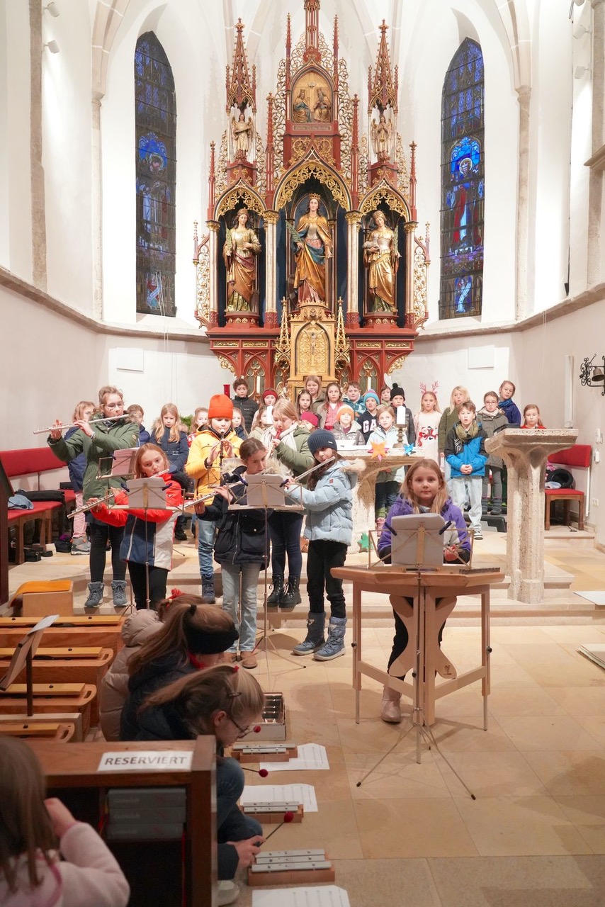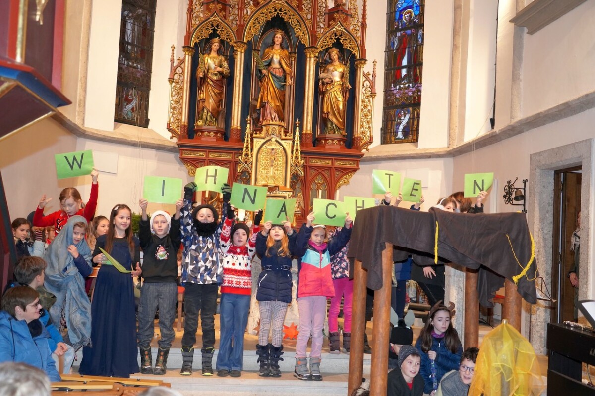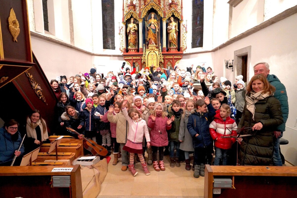 Einen ersten Höhepunkt des ersten Tages gab es dann in der gegenüber liegenden Pfarrkirche. Dort war der große Auftritt der Kids zum Adventkonzert. Direktorin Annemarie Hauer und ihr fleißiges Team haben wochenlang mit den Volksschulkindern Lieder und eine Weihnachtsgeschichte einstudiert und dann in der bis auf den letzten Platz gefüllten Pfarrkirche aufgeführt. Die Begeisterung bei den Kids und den Besuchern war grenzenlos. Zwischenapplaus und am Ende Standing Ovationen war der Lohn der fantastischen Darbietung.