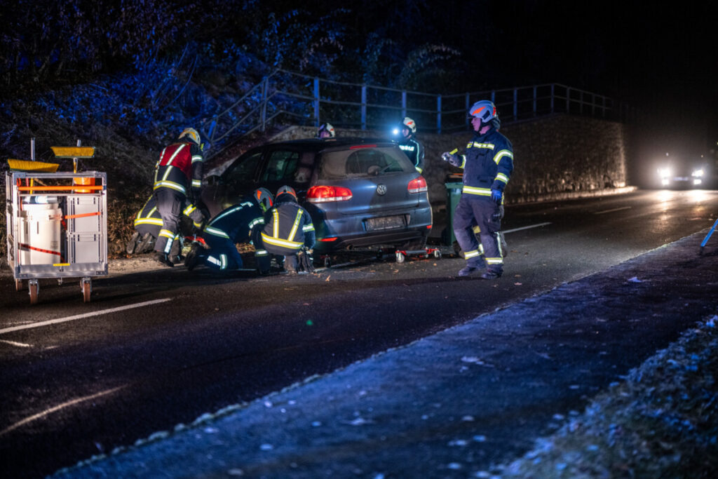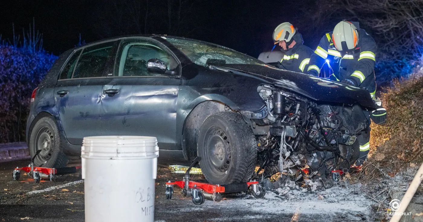 TEAM FOTOKERSCHI / MATTHIAS KALTENLEITNER Attersee am 29.11.2025 – Ein 16-Jähriger aus dem Bezirk Vöcklabruck verursachte in den frühen Morgenstunden des 29. November 2025 einen Verkehrsunfall auf der B151, nachdem er alkoholisiert am Steuer saß. Gegen 4:25 Uhr lenkte der Jugendliche, der keinen Führerschein besitzt, einen PKW von Attersee kommend in Richtung Seewalchen. Am Beifahrersitz saß der 18-jährige Zulassungsbesitzer des Fahrzeugs. Auf Höhe von Straßenkilometer 14,460 geriet das Fahrzeug links von der Fahrbahn ab und prallte heftig gegen eine Mauer. Das Auto wurde dabei schwer beschädigt. Nach dem Unfall verließen beide Insassen die Unfallstelle. Der 18-jährige Beifahrer, der bei dem Vorfall verletzt wurde, suchte eigenständig ein Krankenhaus auf und meldete den Unfall erst später gegen 8:45 Uhr bei der Polizei. Der 16-jährige Lenker konnte wenig später an seiner Wohnadresse aufgefunden werden. Ein Alkomattest ergab bei ihm einen Wert von 1,14 Promille. Der Jugendliche zeigte sich gegenüber den Beamten geständig.