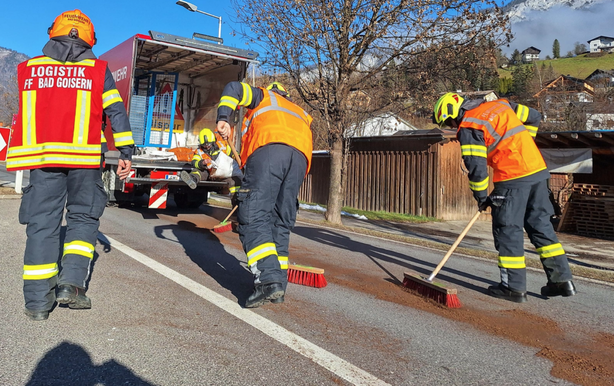 Ein technisches Gebrechen an einem Schwerfahrzeug war wohl die Ursache gewesen, sodass folglich Motoröl in größerem Umfang ausgetreten und die Bundesstraße langstreckig verschmutzt hatte. Beginnend bei der Ortsumfahrung erstreckte sich die Ölverschmutzung in nördlicher Richtung bis hin zur Gemeindegrenze. Seitens der Polizei wurden daraufhin die Feuerwehren Bad Goisern und Weissenbach zur Beseitigung des Schadstoffaustritts alarmiert. Entsprechend groß war folglich jene Menge Ölbindemittel, mit der die Einsatzkräfte die Ölspur abstreuen mussten, um so die Rutschgefahr und Umweltverschmutzung zu beseitigen. Mit viel Manpower, Besen und der Feuerwehr-Kehrmaschine wurde die Fahrbahn gereinigt. Erst nach rund drei Stunden konnten die Arbeiten der Feuerwehrkräfte mitsamt der Wiederherstellung der Einsatzbereitschaft abgeschlossen werden.