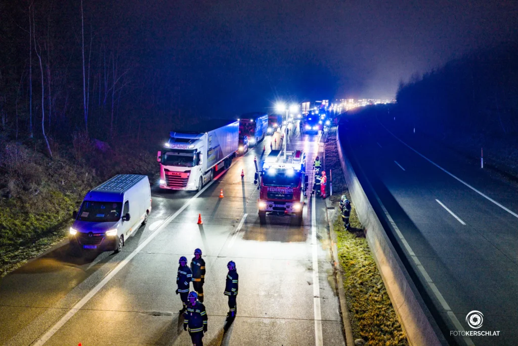 St. Georgen im Attergau am 05.12.2025 – Ein schwerer Verkehrsunfall mit vier Verletzten ereignete sich am späten Abend auf der Westautobahn im Gemeindegebiet von St. Georgen im Attergau.