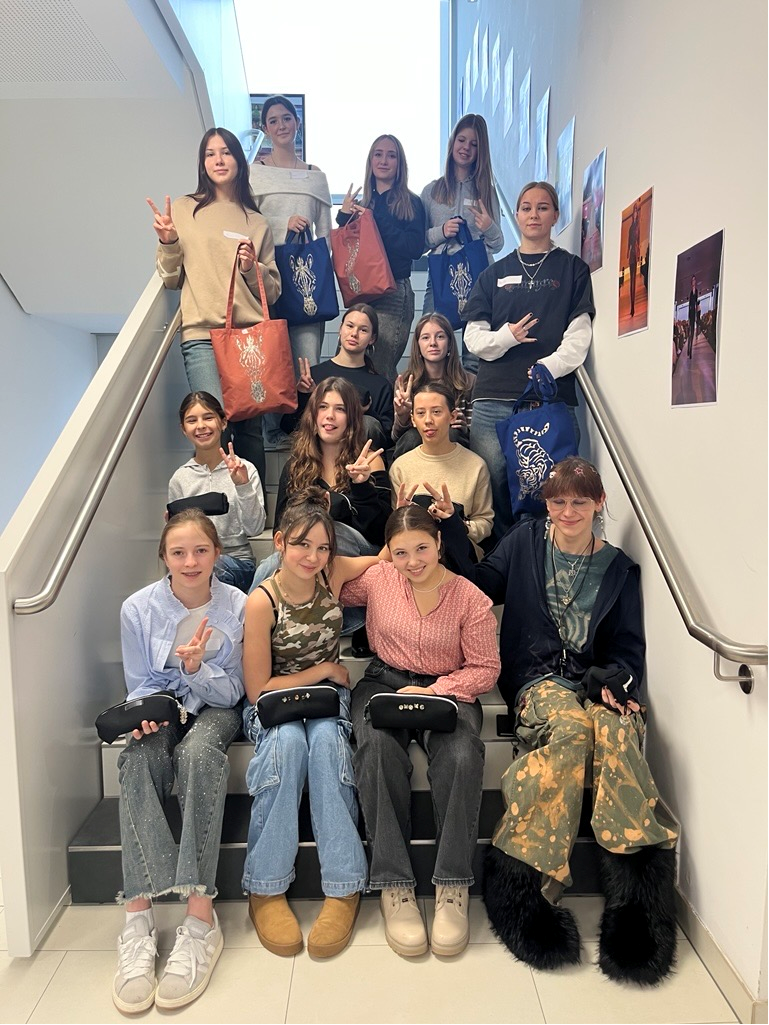 Dabei gestalteten sie individuelle Taschen mit eigenen Prints sowie Beauty-Bags mit Perlenstickerei und konnten ihrer Kreativität freien Lauf lassen. Außerdem wagten sich unsere Gäste an Laufstegtraining und Modezeichnen heran – nur zwei Bereiche von vielen, die Einblicke in die vielseitige Welt der Mode geben.