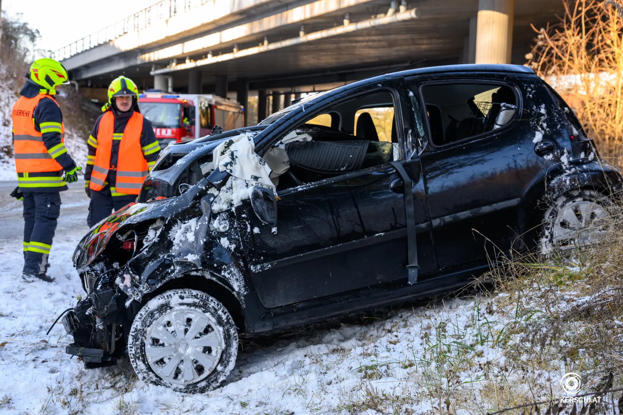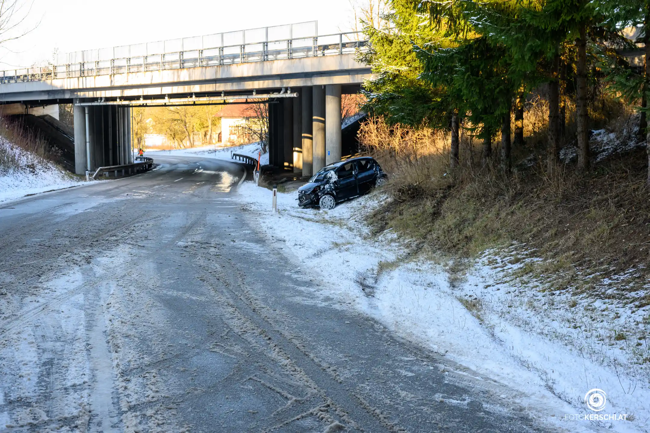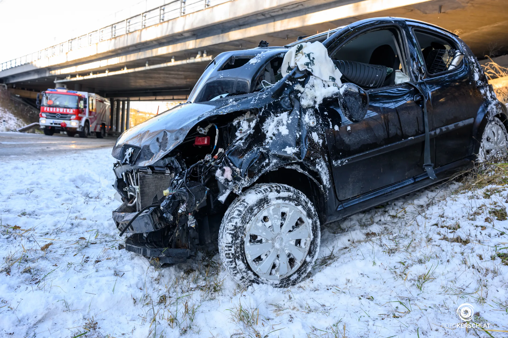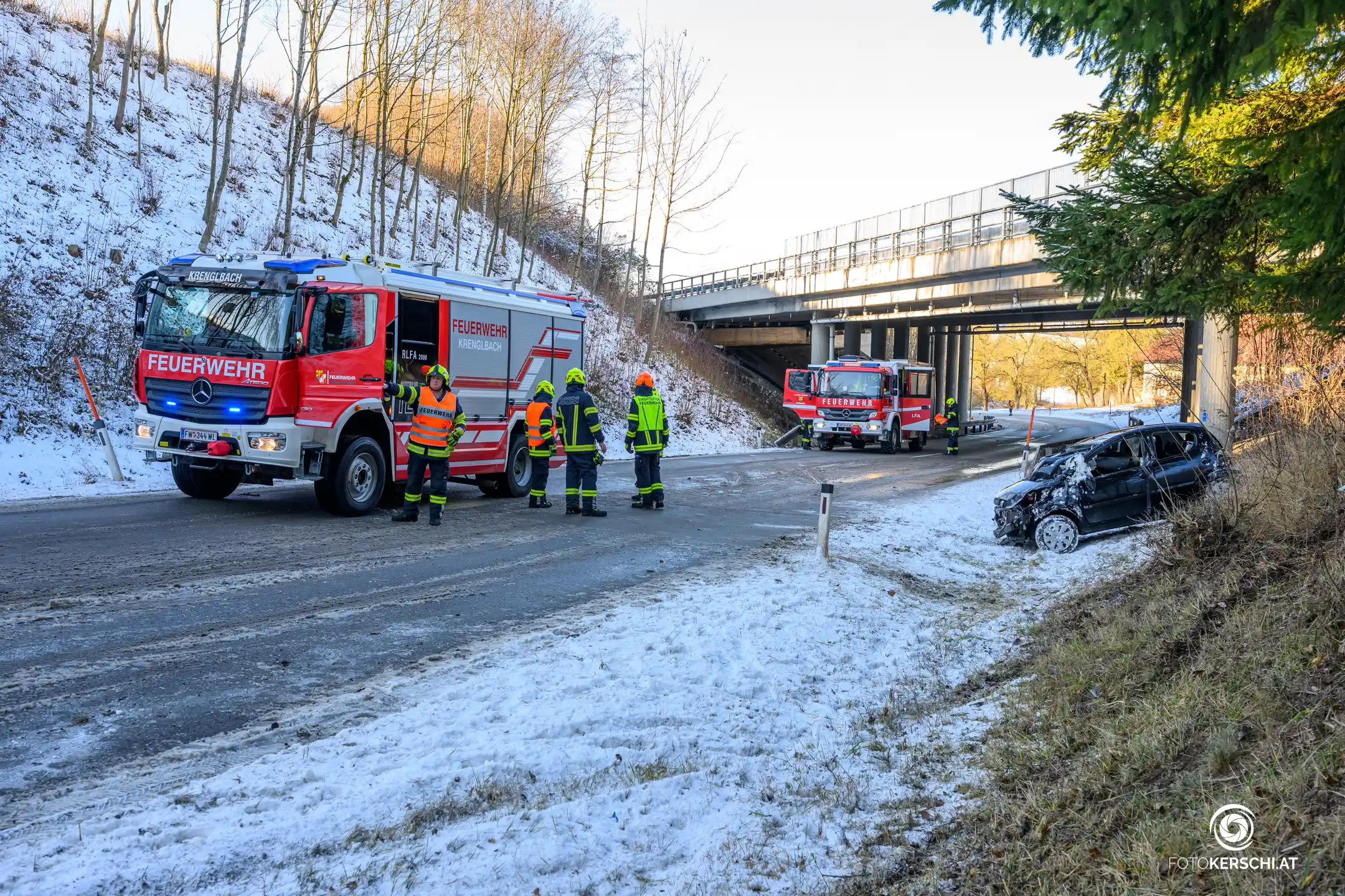 Der Unfall ereignete sich im Bereich Oberham, als ein Pkw von der Fahrbahn abkam und stark beschädigt im Straßengraben neben einer Brückenunterführung zum Stillstand kam. Die Feuerwehren Krenglbach und Geisensheim wurden gegen 12:38 Uhr alarmiert und rückten zur Personenrettung aus.