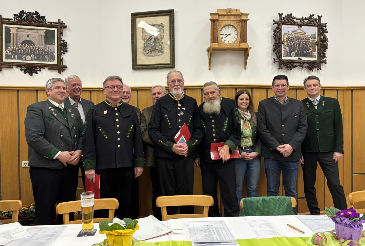 Im Anschluss wurden langjährige Mitglieder ausgezeichnet: Kurt Waldhör und Daniel Zach erhielten für 15 Jahre Mitgliedschaft die Verdienstmedaille in Bronze des Oberösterreichischen Blasmusikverbandes. Eine besondere Ehrung erfuhr der langjährige Kassier Sepp Fahrner, der seit 1979 eine unverzichtbare Stütze der Salinenmusik ist. Er wurde mit dem Verdienstkreuz in Gold ausgezeichnet. Die Kapelle zeigte sich stolz und dankbar, solche engagierten Persönlichkeiten in ihren Reihen zu haben.