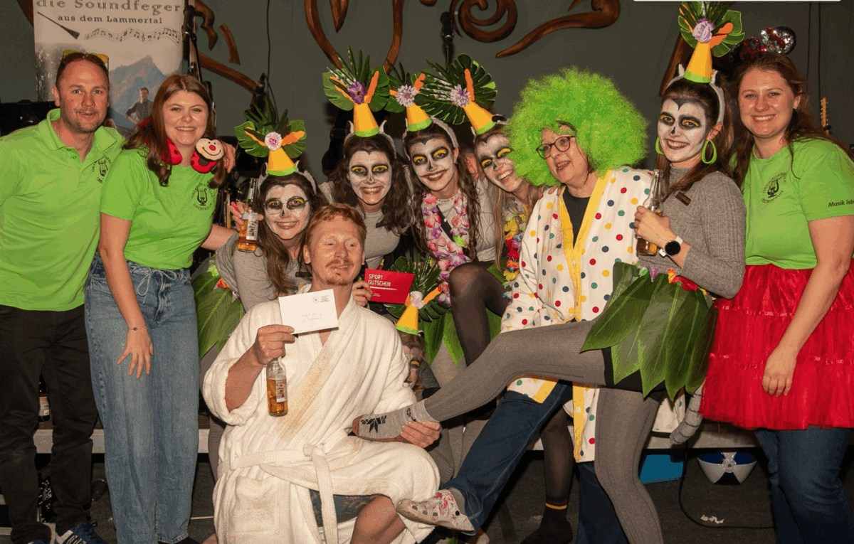 Für den musikalischen Schwung sorgten die „Soundfeger“ aus dem Lammertal, die mit ihrem Programm den vielen „Maschkaran“ kaum Zeit zum Verschnaufen ließen und das Tanzparkett füllten. Auch die Maskenprämierung stellte die Jury vor keine leichte Aufgabe: Die Vielfalt und Kreativität der Verkleidungen war heuer besonders groß. Von einer ganzen „King-Julien“-Lemurenherde über eine Polizeieskorte, übrig gebliebene Ballone der Gosauer Ballonwoche, quirlige Federbälle bis hin zu den griechischen Göttern – alles war beim Obetrauner Sockenball vertreten.