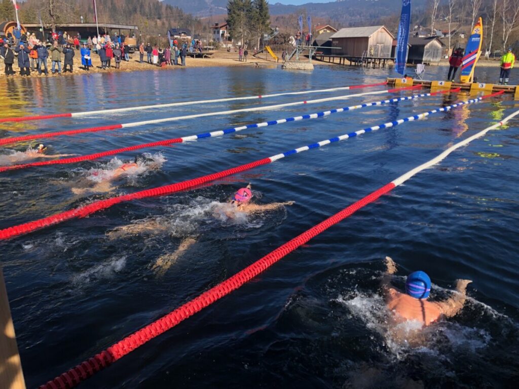 Der Wettkampf am Samstag beginnt um 9:30 Uhr und umfasst 9 Bewerbe über die Distanzen 50, 100 und 400 m Brust, sowie 50,100 und 500 m Kraul und 500 und 1.000 m Freistil. Als Teambewerb wird ein Staffelbewerb über 4×50 m Freistil ausgetragen. Für den Event wurde im See eigens ein Wettkampfpool mit 6 Bahnen zu 25 m errichtet. Dieser Pool steht den Eisschwimmern ab sofort zum Training zur Verfügung – kostenfrei und auf eigene Gefahr.