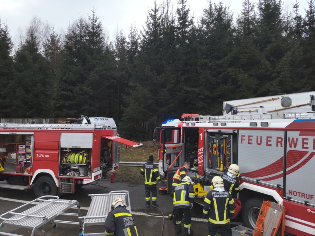 LAAKIRCHEN. Zu einem schweren Verkehrsunfall wurden die Freiwillige Feuerwehr der Stadt Laakirchen und die BTF Steyrermühl am Sonntagmorgen auf die Westautobahn A1, Fahrtrichtung Wien, alarmiert.
