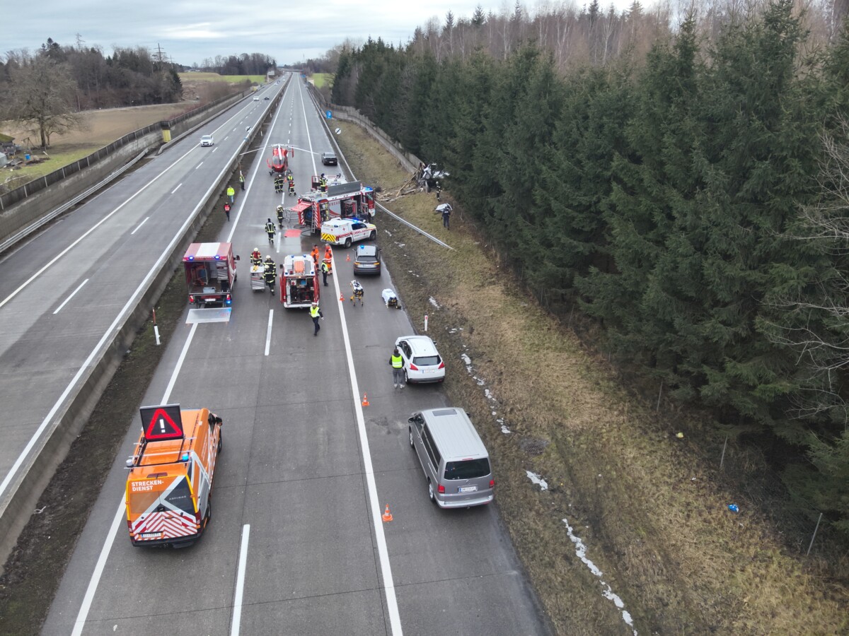 LAAKIRCHEN. Zu einem schweren Verkehrsunfall wurden die Freiwillige Feuerwehr der Stadt Laakirchen und die BTF Steyrermühl am Sonntagmorgen auf die Westautobahn A1, Fahrtrichtung Wien, alarmiert.
