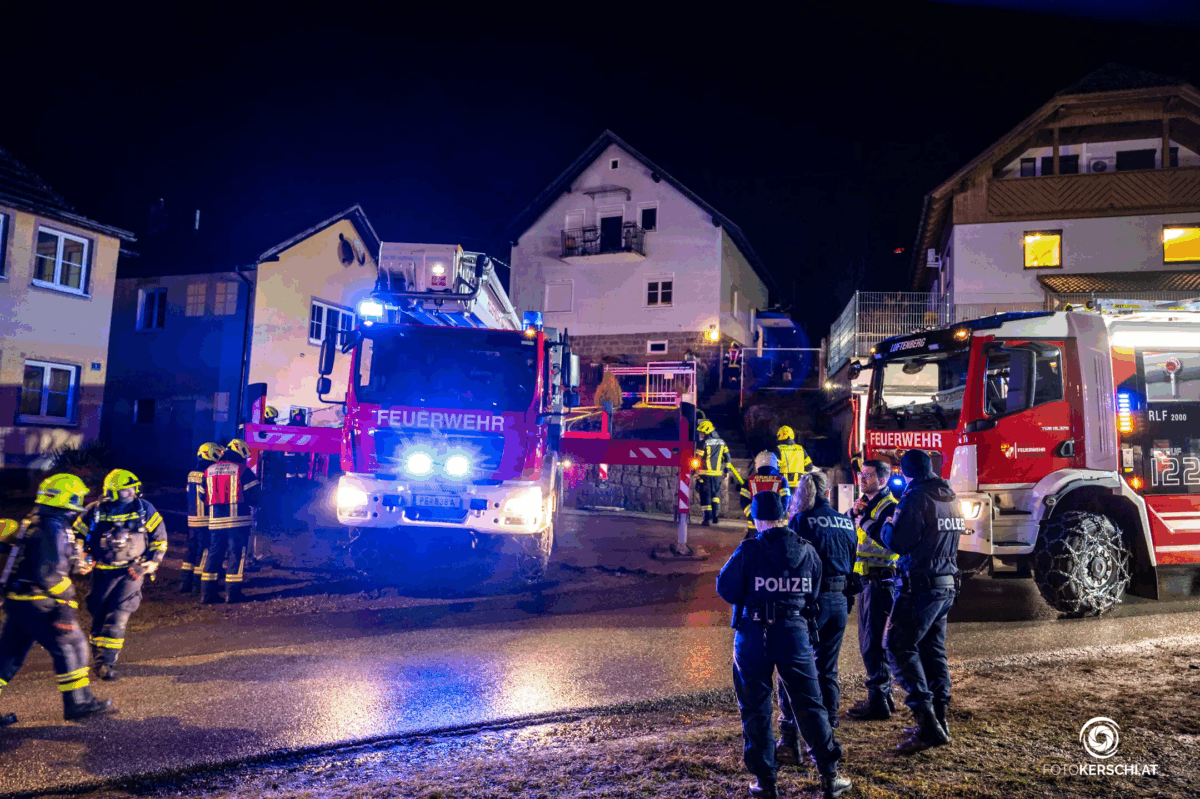 Bezirk Perg. Ein Brand an der Außenseite eines Wohnhauses sorgte am Sonntagabend für einen Großeinsatz der Feuerwehren.