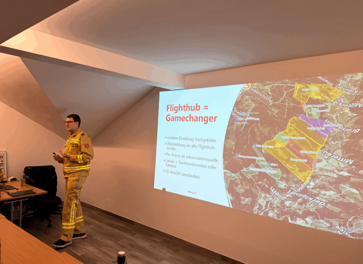 Neben Einsatzberichten wurden auch technische Entwicklungen vorgestellt. Dazu zählten Informationen zu aktuellen DJI Systemen, die Präsentation neuer Drohnenmodelle sowie Erfahrungswerte zu 5G Anwendungen, Flight Hub Lösungen und Live Übertragungssystemen für die Einsatzleitung.