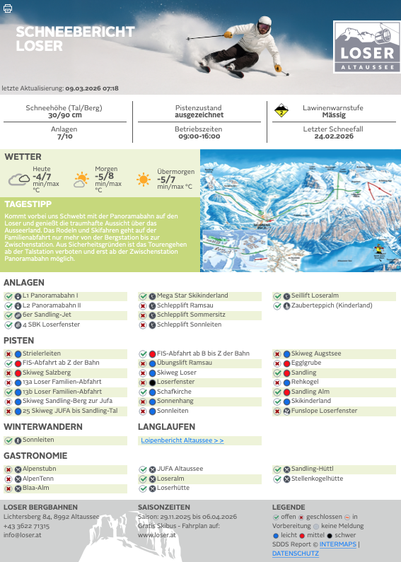 Schneebericht der Loser Bergbahnen