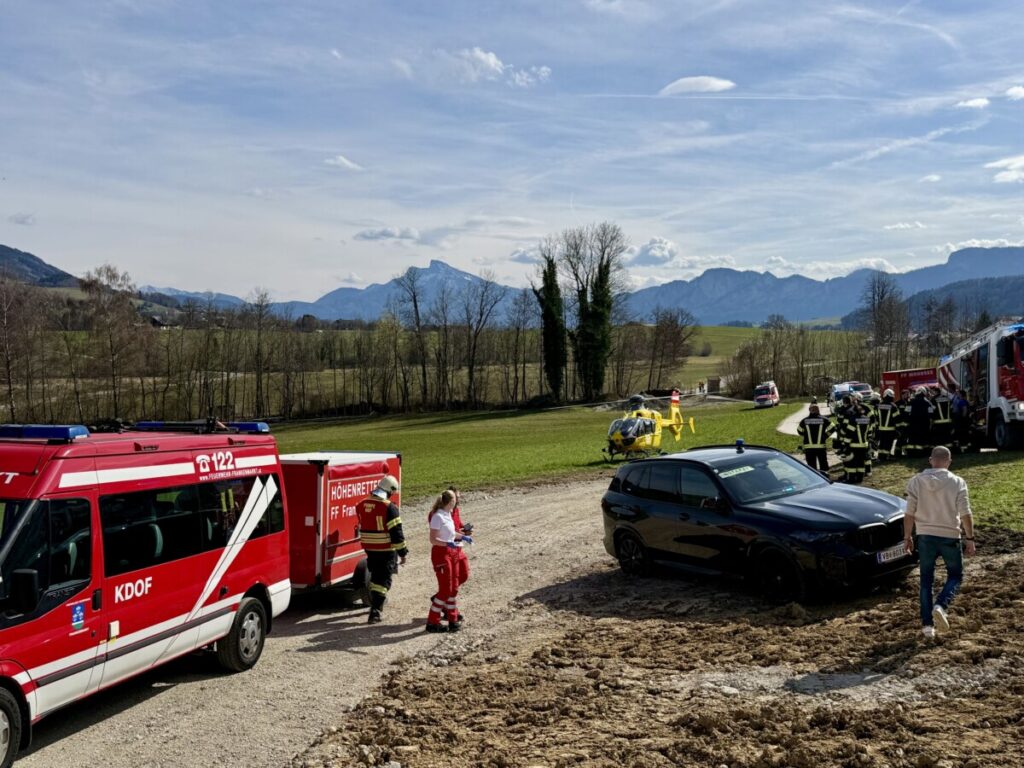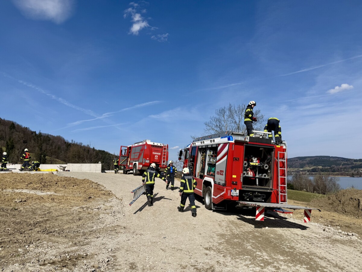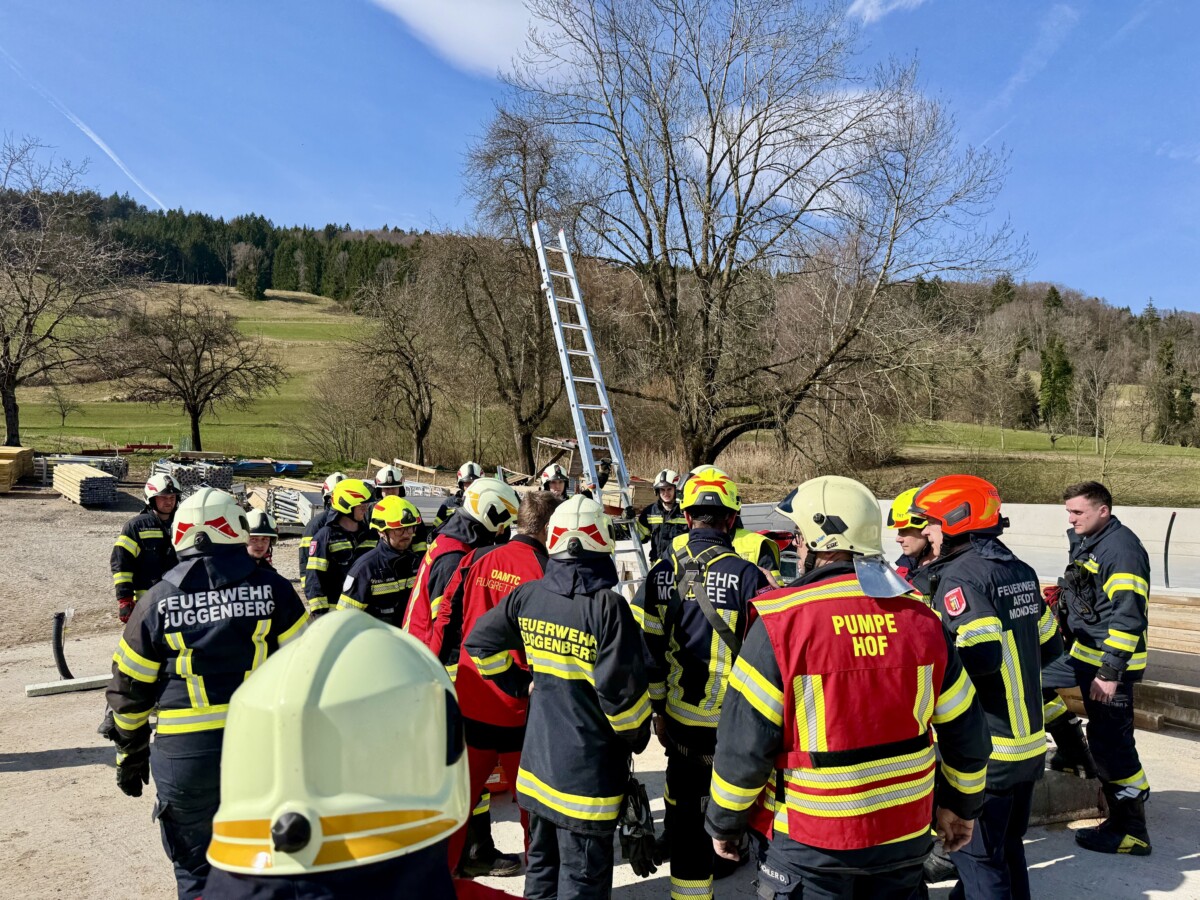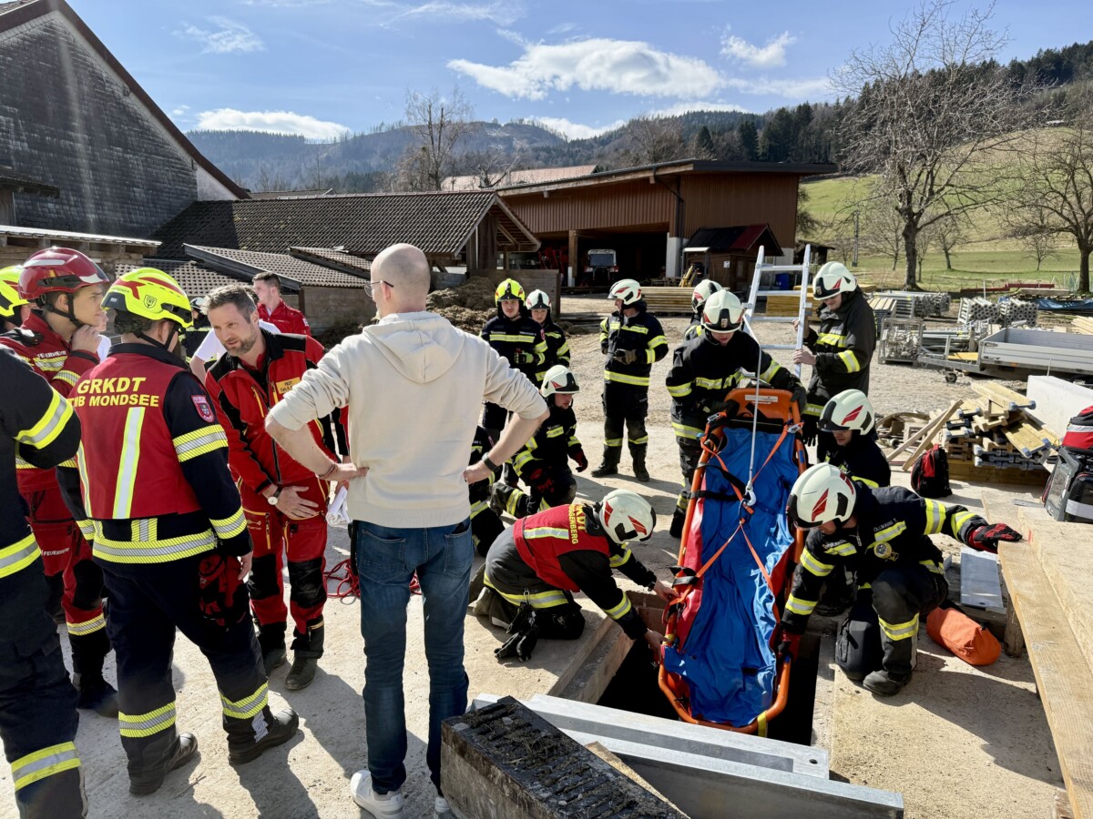 Am Samstag, 14.03.2026, wurden die Feuerwehren aus Hof b. Mondsee, Guggenberg, Mondsee und Tiefgraben um 12.37 Uhr mit dem Einsatzstichwort: „Personenrettung tief – Person in Baugrube gefallen alarmiert.