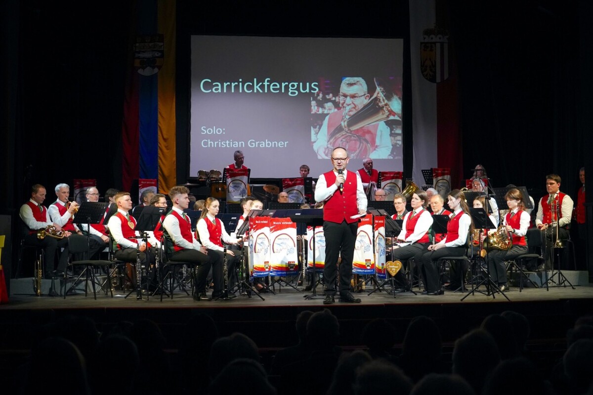 Frisch gestärkt führte der Weg zurück in Konzertsaal, wo es auch gleich mit „Musik liegt in der Luft” flott weiter ging. Mit „Carrickfergus” einem irischen Musikstück mit Solist Christian Grabner, mit der „The Blues Brothers Revue“, „Celebration“, „Shallow“ Lady Gaga & Bradley Cooper und „Beyond the Sea“ findet Memo war der Musikabend ausgefüllt mit einem musikalischen Feuerwerk fast zu Ende. Ja ohne Zugabe geht es natürlich nicht! Mit einem „Bohemien Tequila“ sprengten die Musiker/innen der Stadtkapelle wohl alle Grenzen und spätestens da war das Publikum nicht mehr zu bremsen! Natürlich wurde der Abend mit dem Radezky Marsch würdig beendet und die Stadtkapelle mit Standing Ovationen verabschiedet.