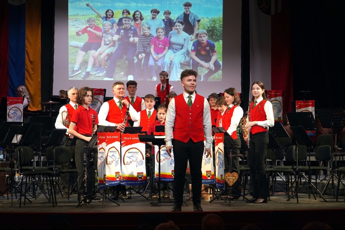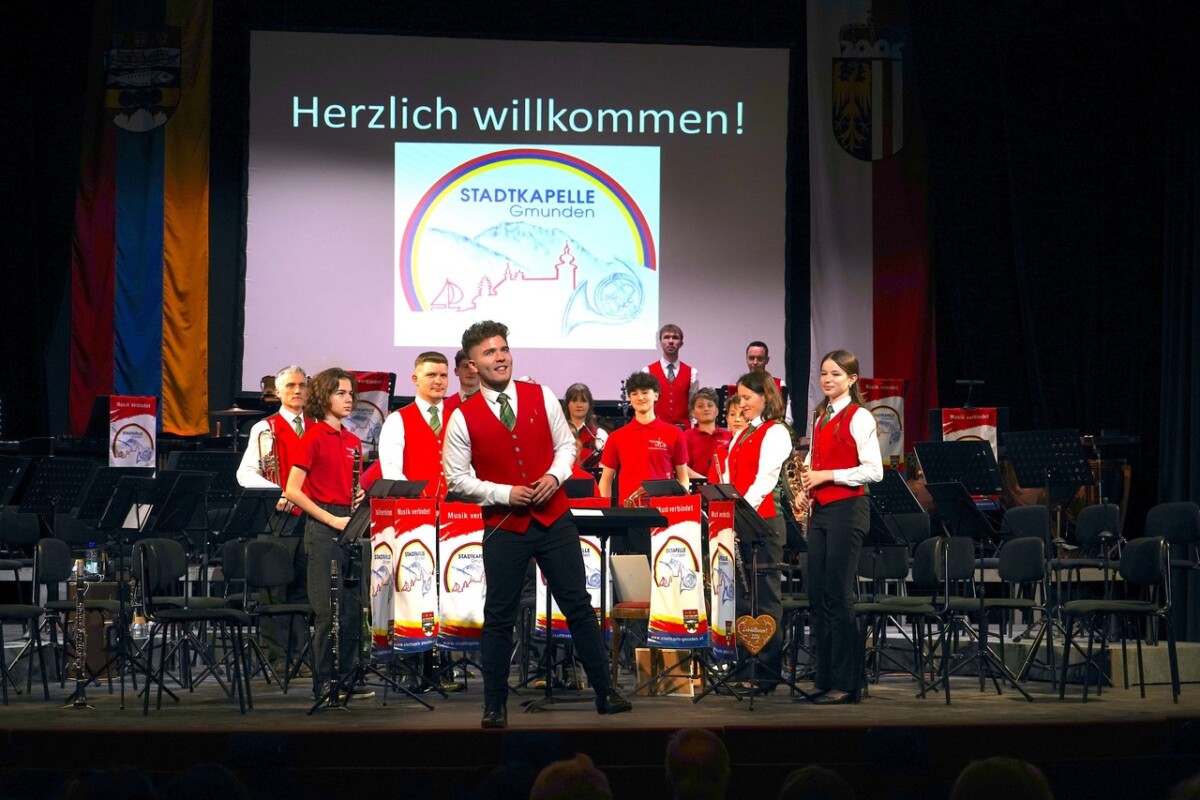 Am Samstag 14.3.2026 fand im ehrwürdigen Stadttheater Gmunden bei vollem Haus das über die Gemeindegrenzen hinaus bekannte Liebstattkonzert statt. Durch den Abend führte in seiner charmanten Weise Mag. Hubert Schmidhuber und er konnte alle Anwesenden, darunter auch Bgm. Mag. Stefan Krapf mit Gattin und Vzbgm. Dipl.Ing. Wolfgang Schlair, viele Gemeindevertreter/innen und Musikkollegen/innen und natürlich den gesamten Klangkörper der Stadtkapelle Gmunden herzlich begrüßen. Den Beginn des Konzertes machten wie immer die Youngstars, die unter Leitung von Kapellmeister Martin Auer ihr Können toll unter Beweis stellten und dafür tosenden Applaus ernteten.